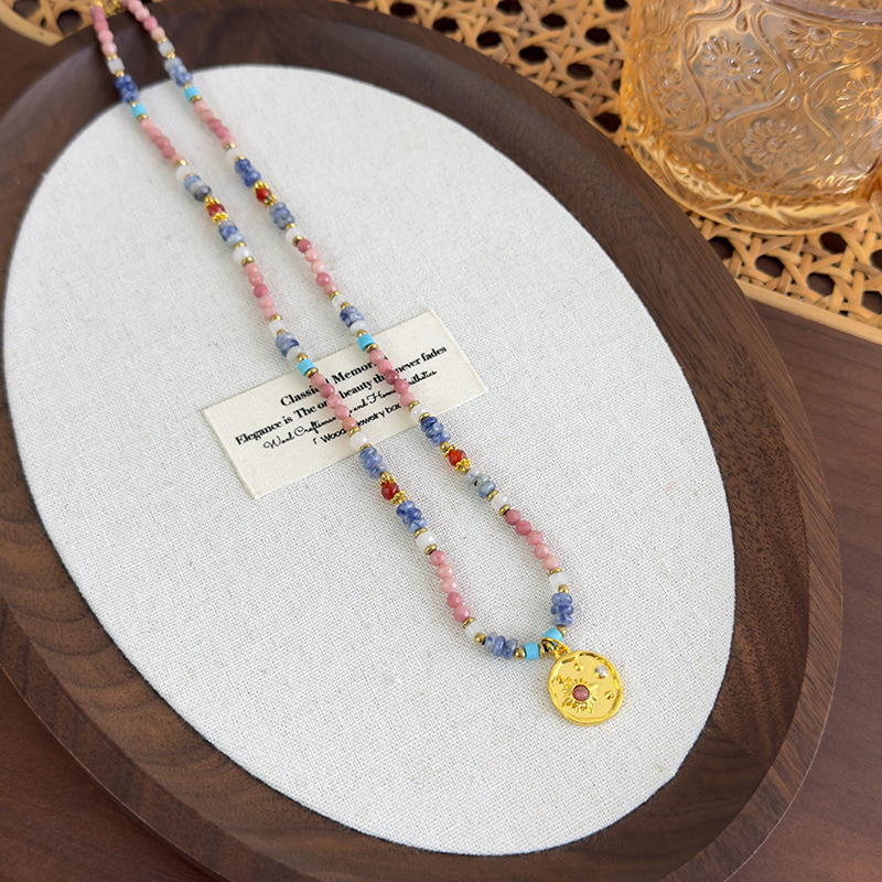 핑크 스톤 페르시 태양 펜던트 목걸이 액세서리 여성 2025 새로운 라이트 럭셔리 틈새 펜던트 쇄골 체인 목걸이스토어 가기