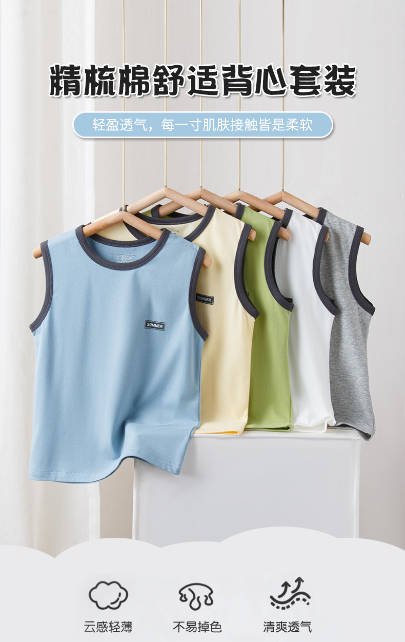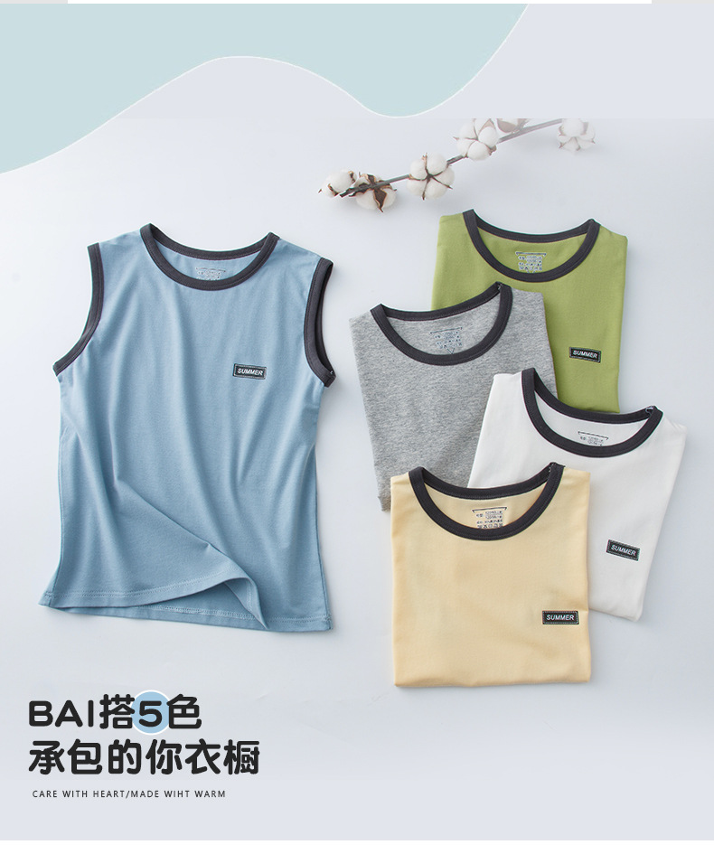 어린이 조끼 순면 소년과 소녀의 내부 착용 소년과 소녀 여름 스타일 중대형 어린이 여름 얇은 조끼