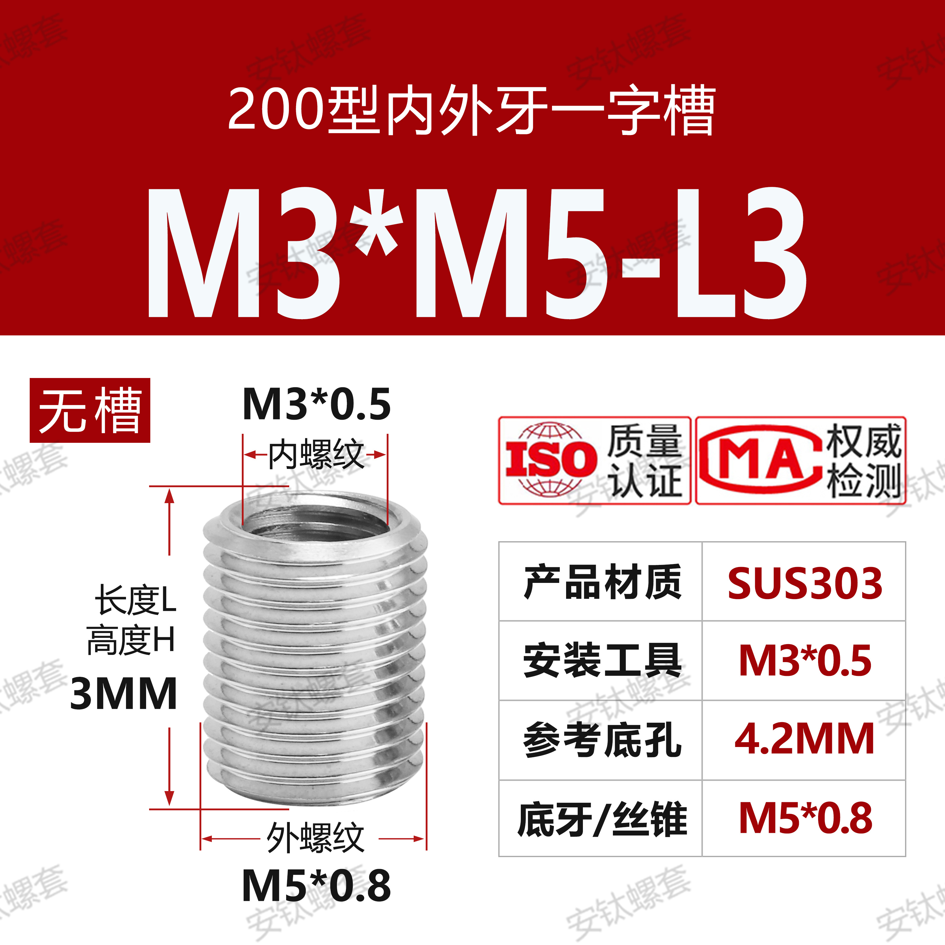• 내부 M3-외부 M5*0.5-길이 3, 홈 없음, 미세한 톱니(10개)