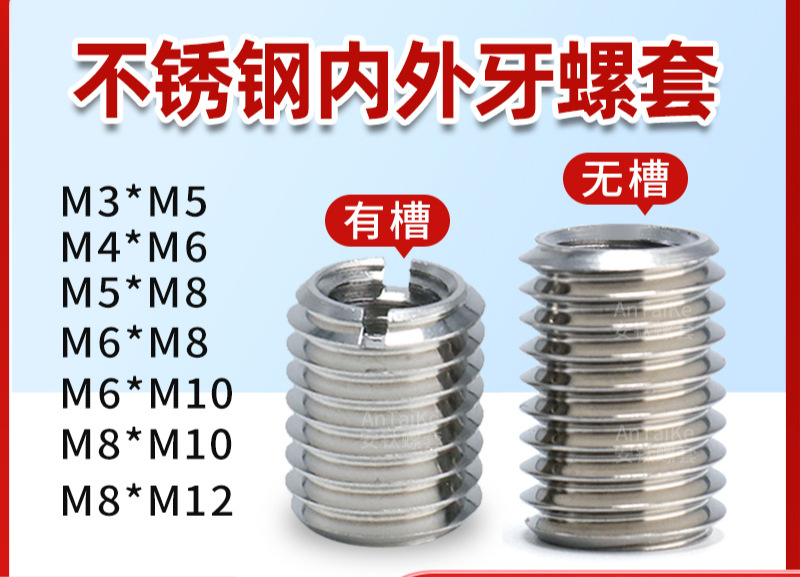 • 304 재질 M4-외부 M8*1.25-길이 6/슬롯 1개(10개)