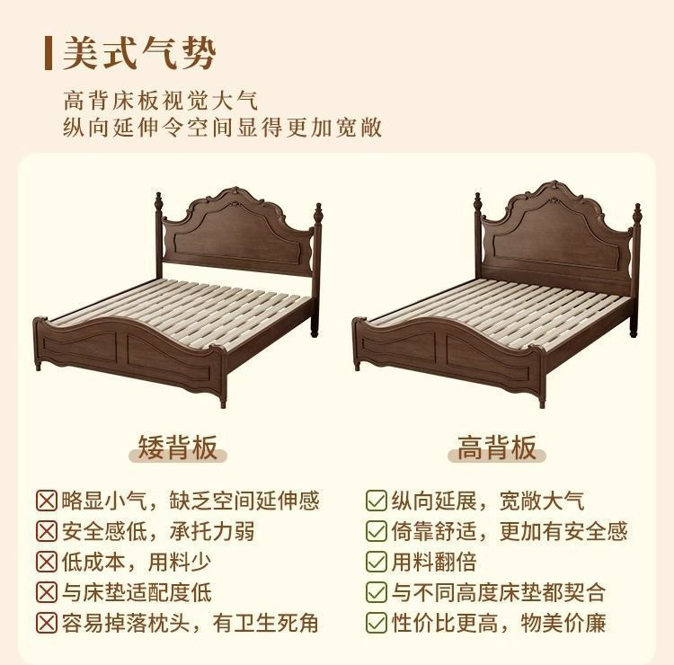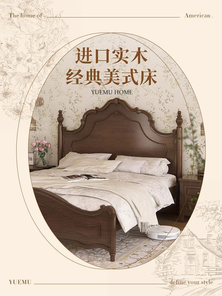 미드 센츄리 스타일 미국식 원목 침대 모던 심플 1.8m 프렌치 레트로 대형 침대 1.5m 라이트 럭셔리 마스터 침실 더블 침대스토어 가기