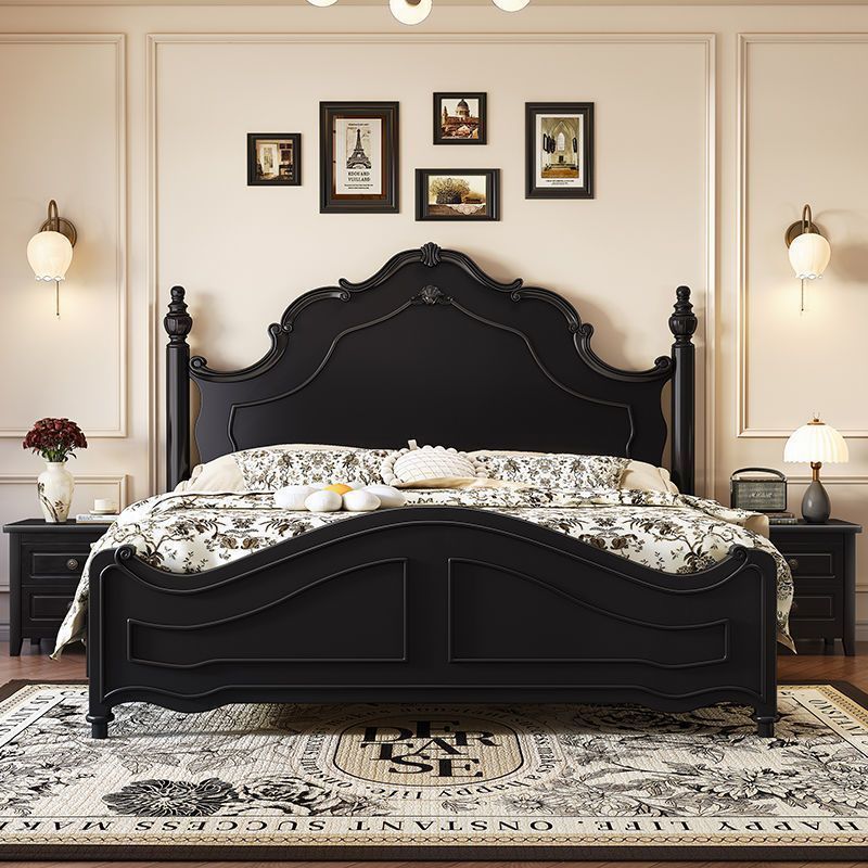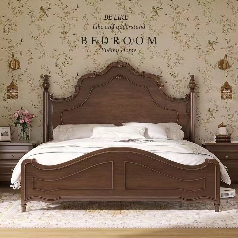 미드 센츄리 스타일 미국식 원목 침대 모던 심플 1.8m 프렌치 레트로 대형 침대 1.5m 라이트 럭셔리 마스터 침실 더블 침대