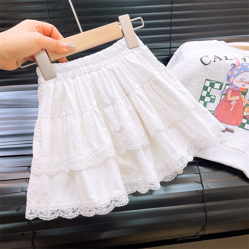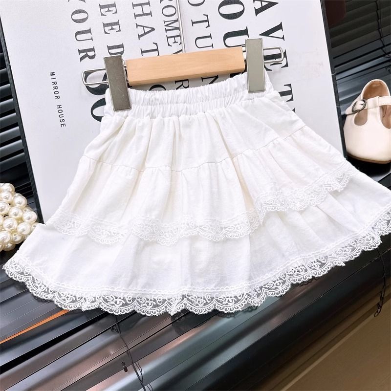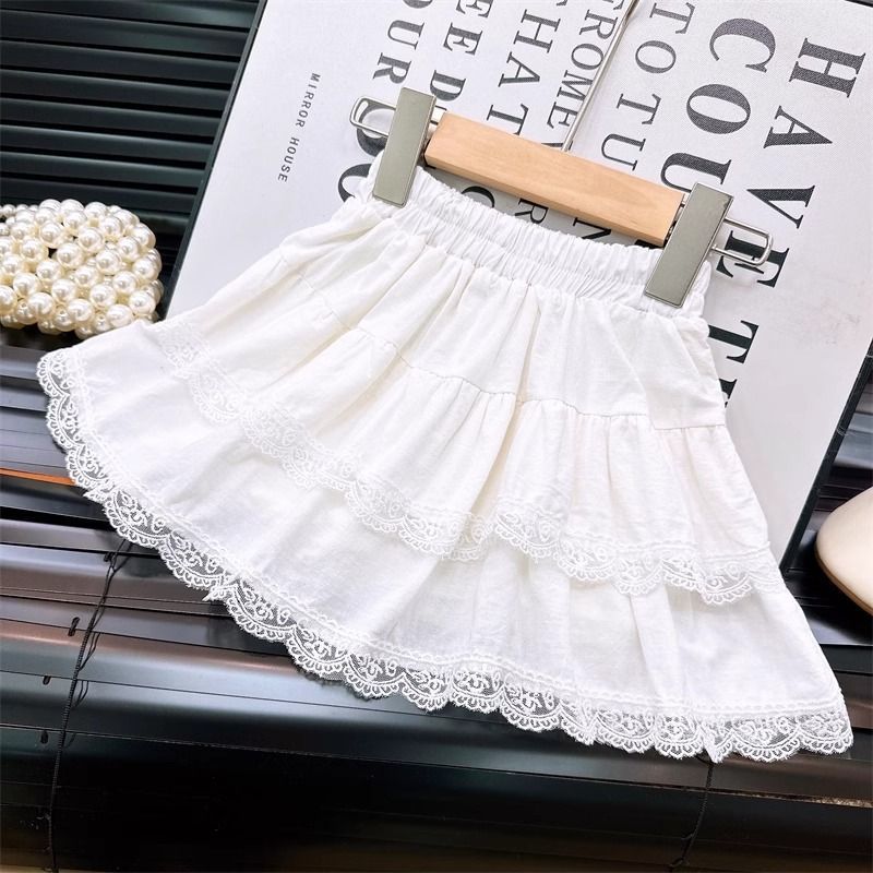 아동 스커트 2025 봄 여름 신작 레이스 케이크 스커트 소녀 주름 스커트 바지가 달린 짧은 스커트