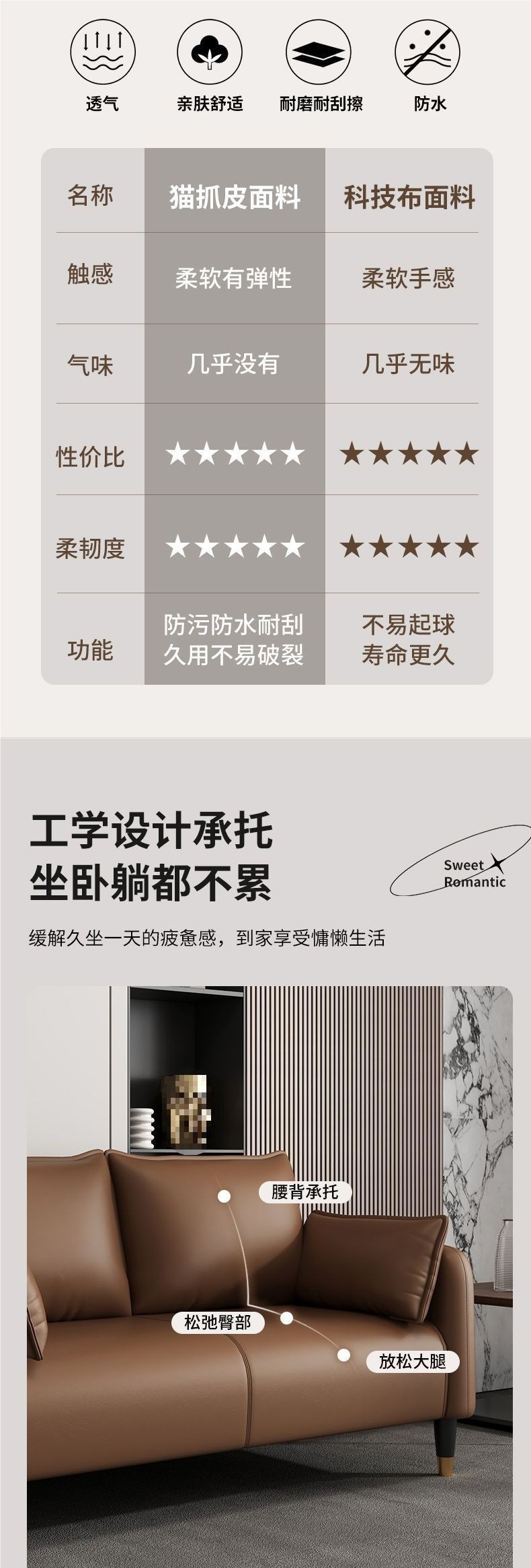 • 브라운 컬러와 오프화이트 컬러의 내마모성 고양이 발톱 가죽 라텍스 스타일♜♜