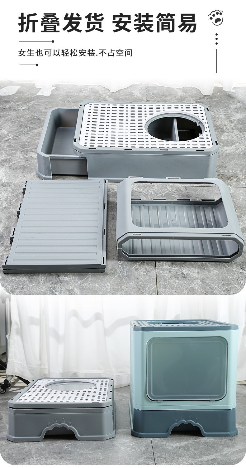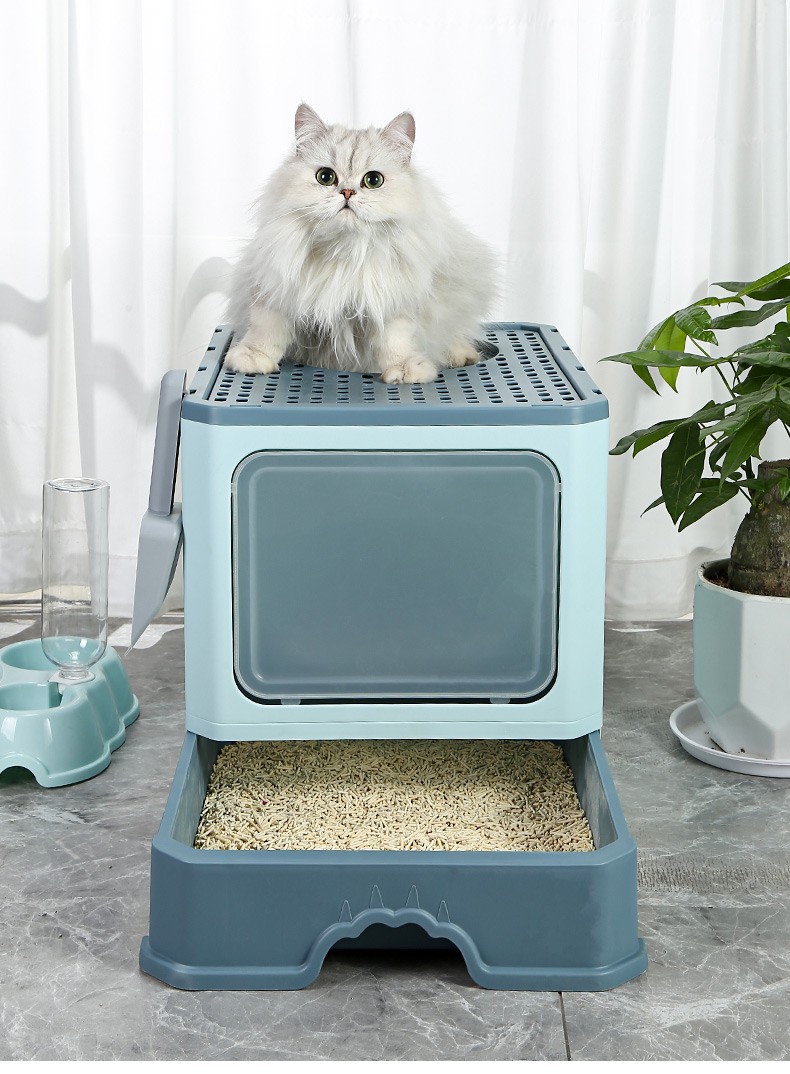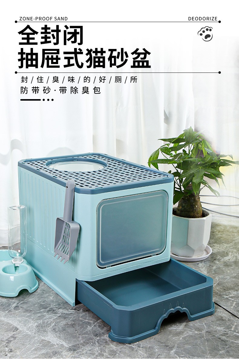 완전 밀폐형 고양이 쓰레기통, 대형, 초대형, 물 튀김 방지 매트, 서랍형 냄새 방지 변기, 고양이 화장실, 고양이 용품