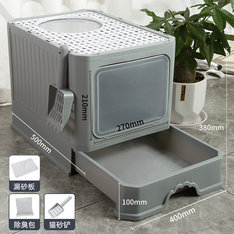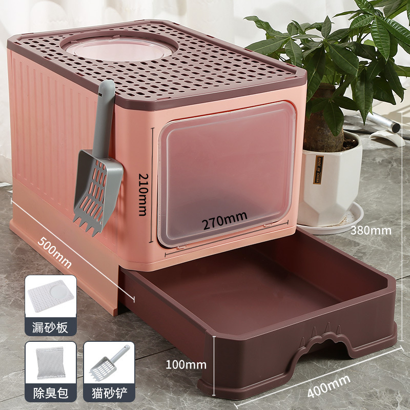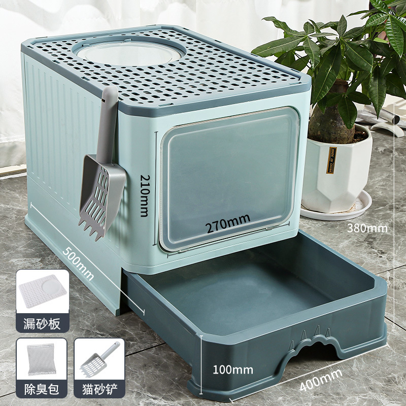 완전 밀폐형 고양이 쓰레기통, 대형, 초대형, 물 튀김 방지 매트, 서랍형 냄새 방지 변기, 고양이 화장실, 고양이 용품스토어 가기