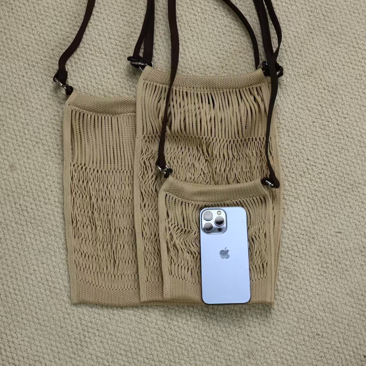 오리지널 트리 크림 가죽] le 같은 스타일의 새로운 스퀘어 메쉬 백 피쉬넷 우븐 백 봄 여름 숄더 크로스백 여성용 가방