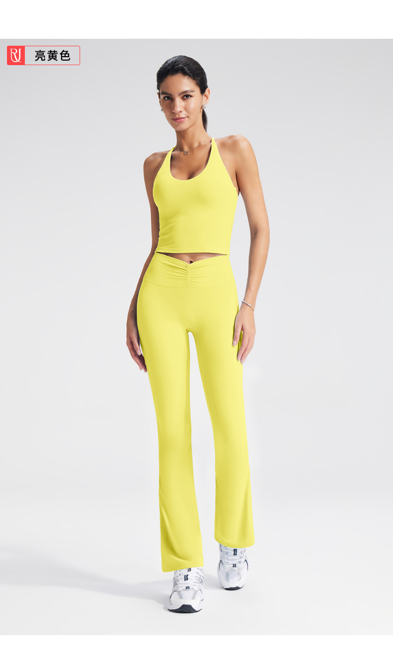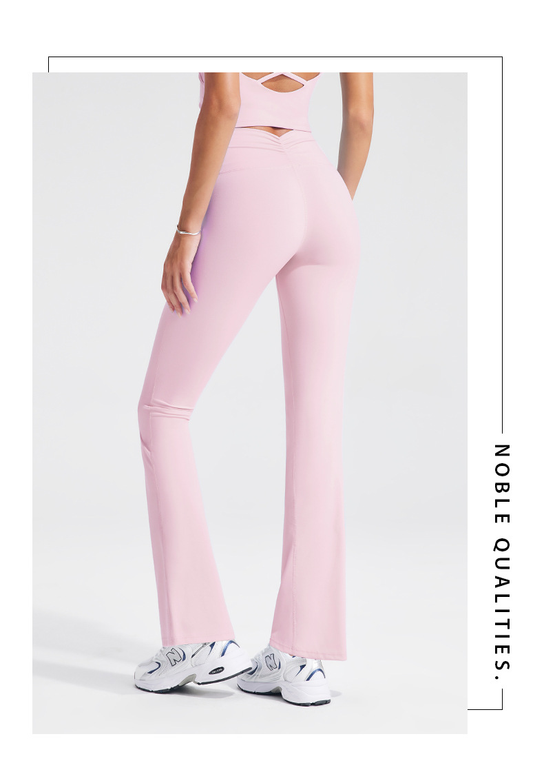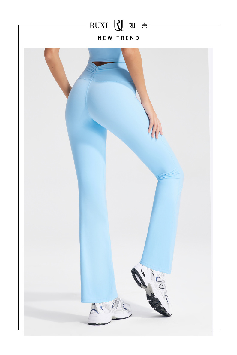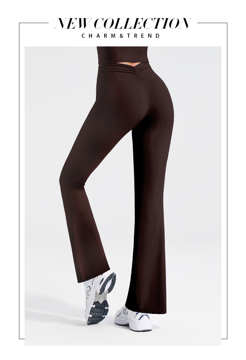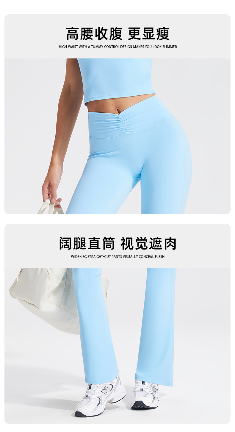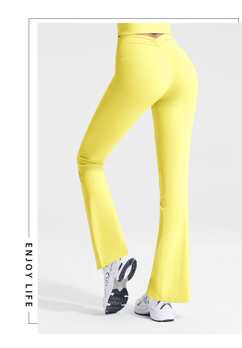 유럽과 미국의 크로스보더 V 허리 요가 바지 피트니스 바지 하이 웨이스트 플리츠 엉덩이 리프팅 스포츠 트레이닝 러닝 요가 플레어 바지