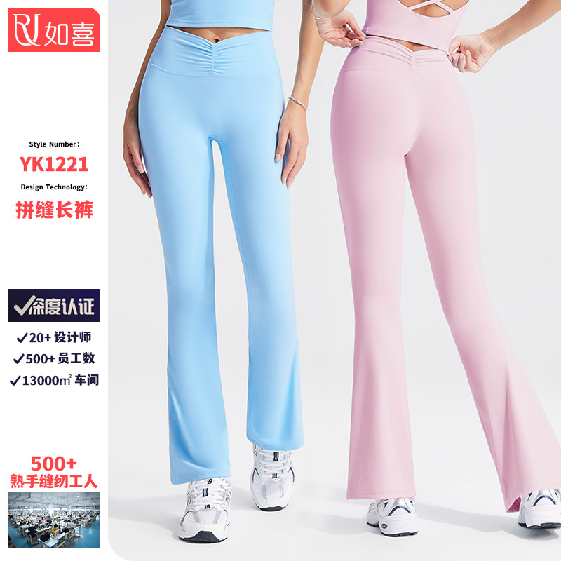 유럽과 미국의 크로스보더 V 허리 요가 바지 피트니스 바지 하이 웨이스트 플리츠 엉덩이 리프팅 스포츠 트레이닝 러닝 요가 플레어 바지스토어 가기