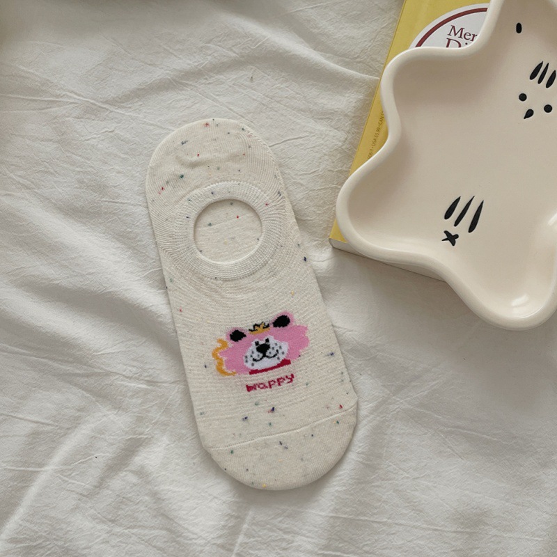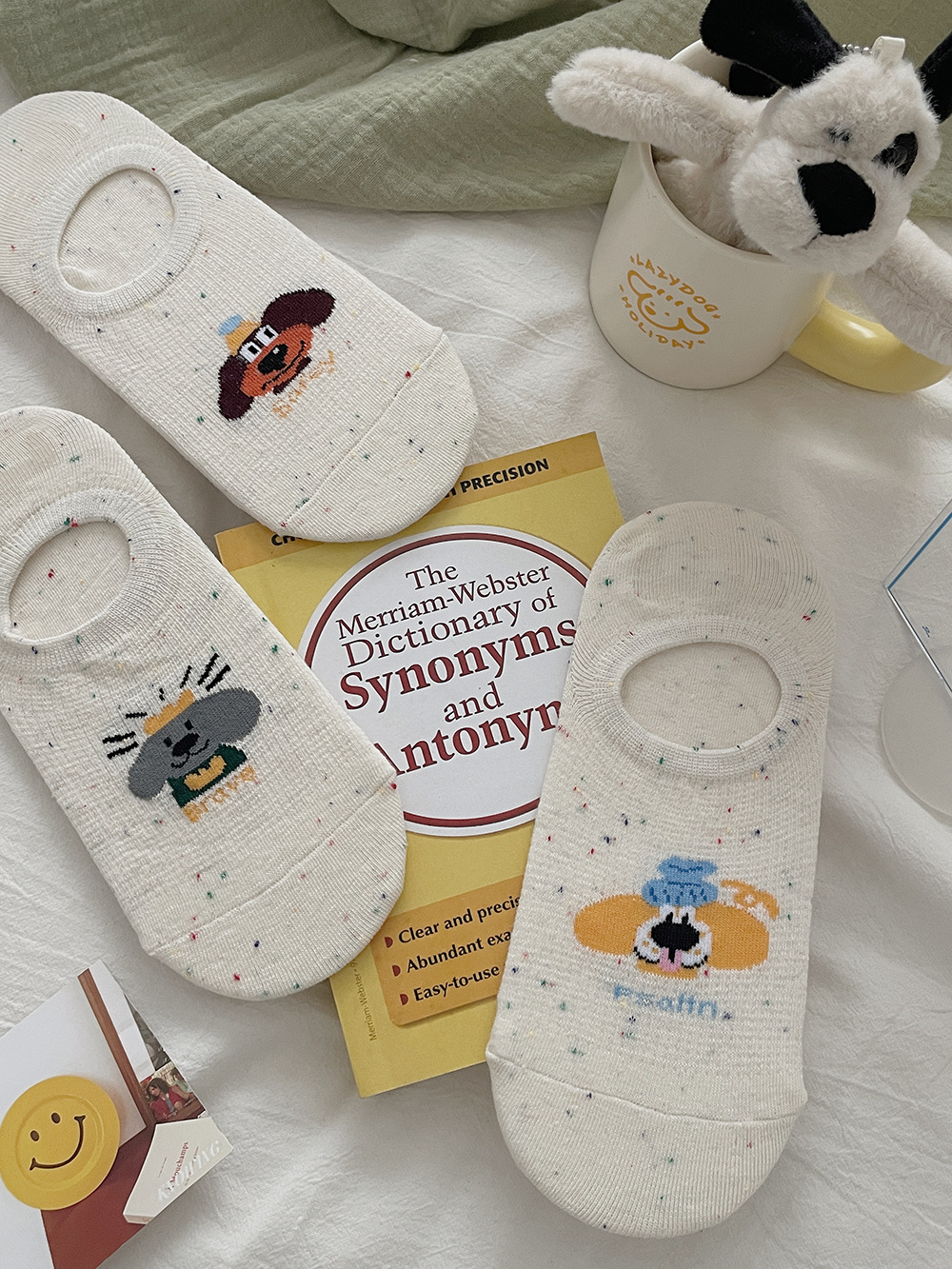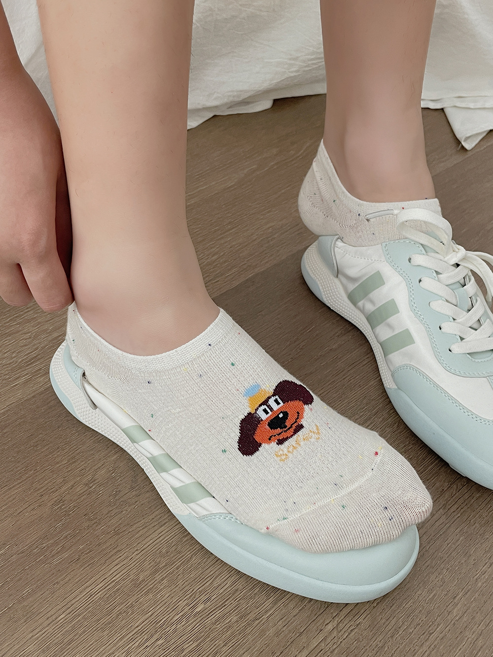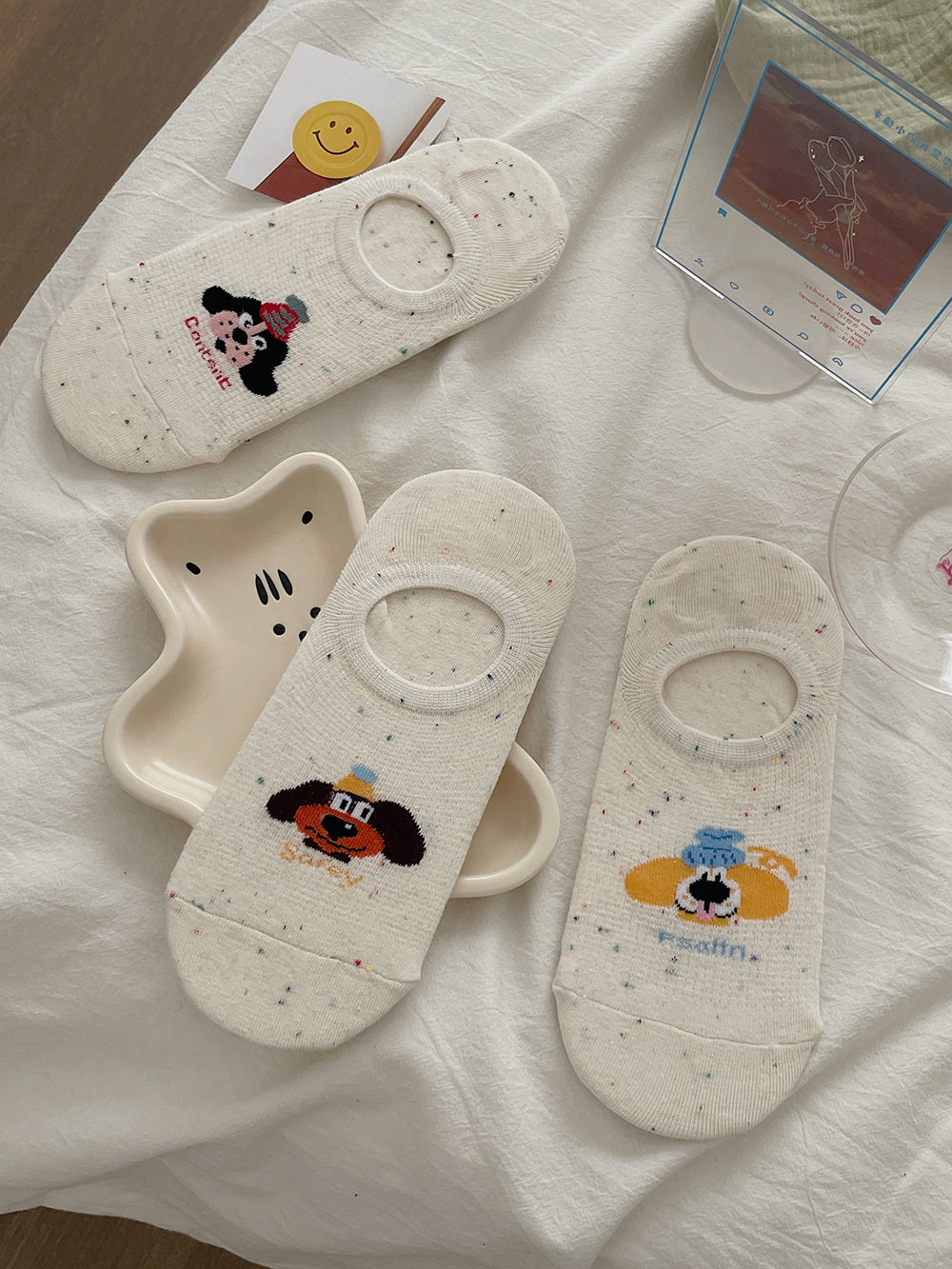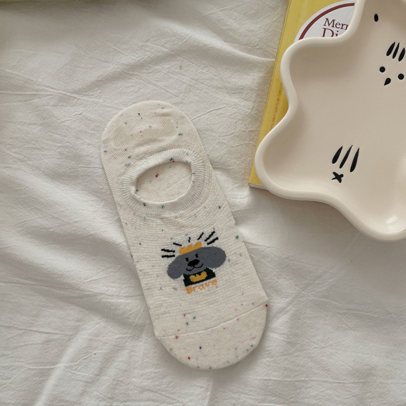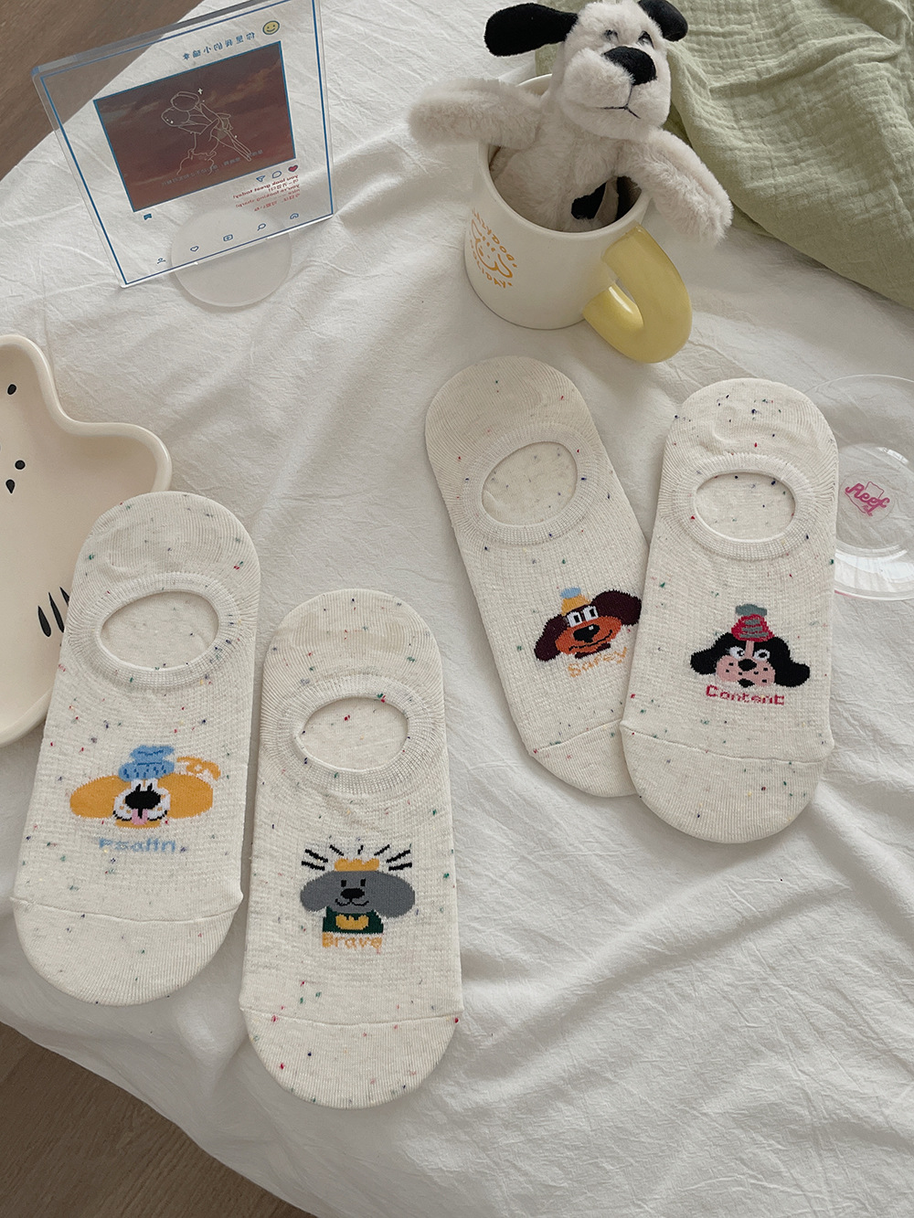 여름 여성용 아이디어 원사 양말, 얇고 귀여운 만화 개 동물, 얕은 입, 보이지 않는 면 양말, 미끄럼 방지, 떨어지지 않는 보트 양말