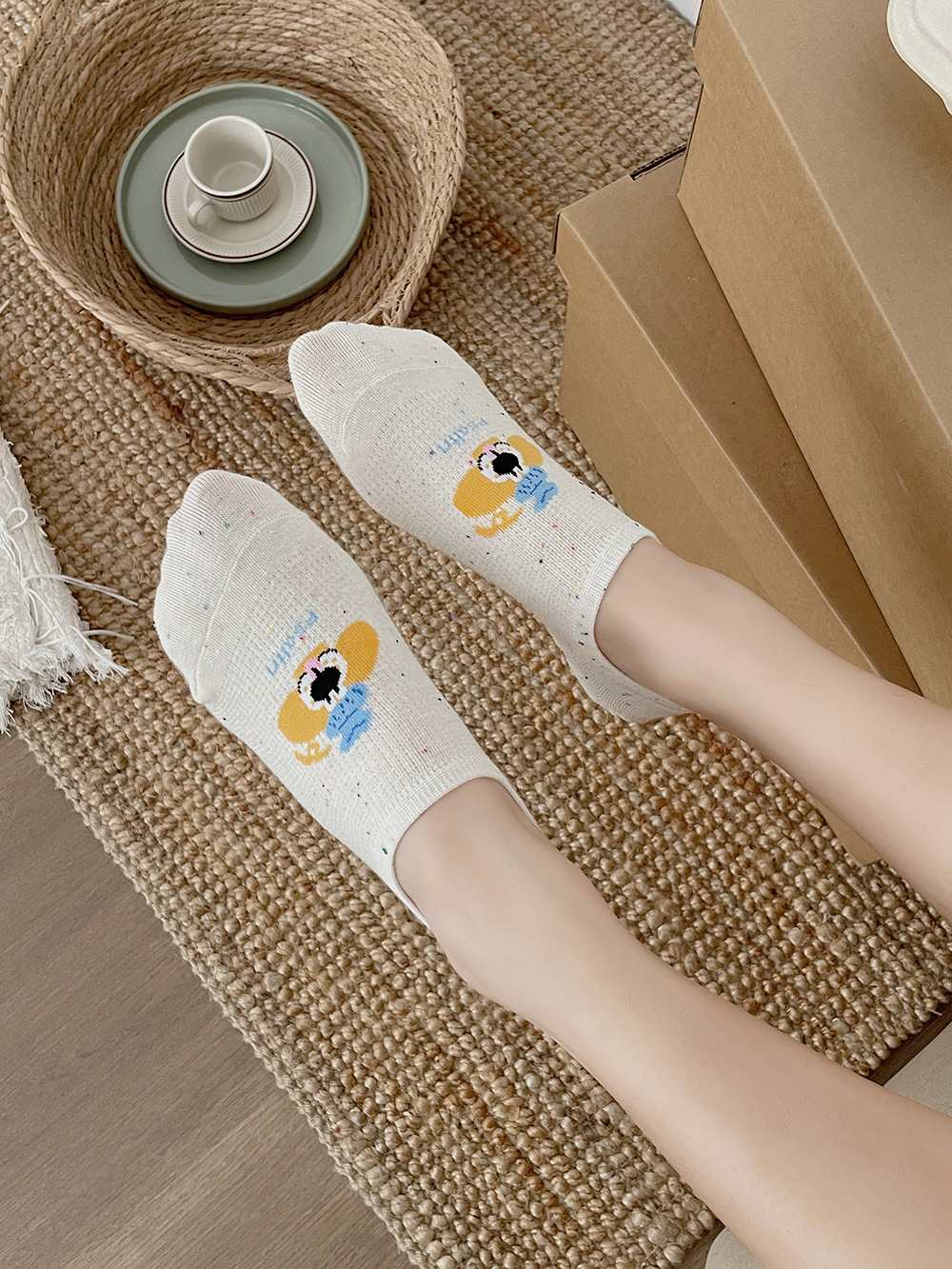 여름 여성용 아이디어 원사 양말, 얇고 귀여운 만화 개 동물, 얕은 입, 보이지 않는 면 양말, 미끄럼 방지, 떨어지지 않는 보트 양말스토어 가기