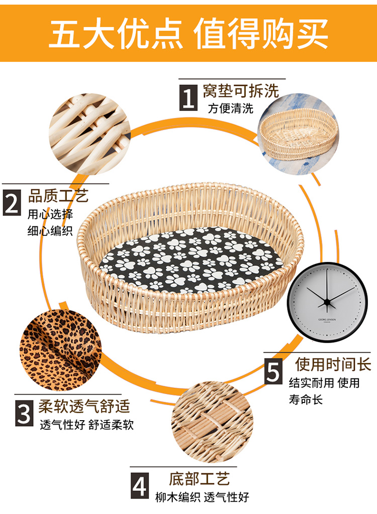 * 등나무 고양이 개집, 여름 시원한 개집, 등나무 고양이 개집, 테디 포메라니안 소형 개집, 테디 개집, 사계절 사용 가능스토어 가기