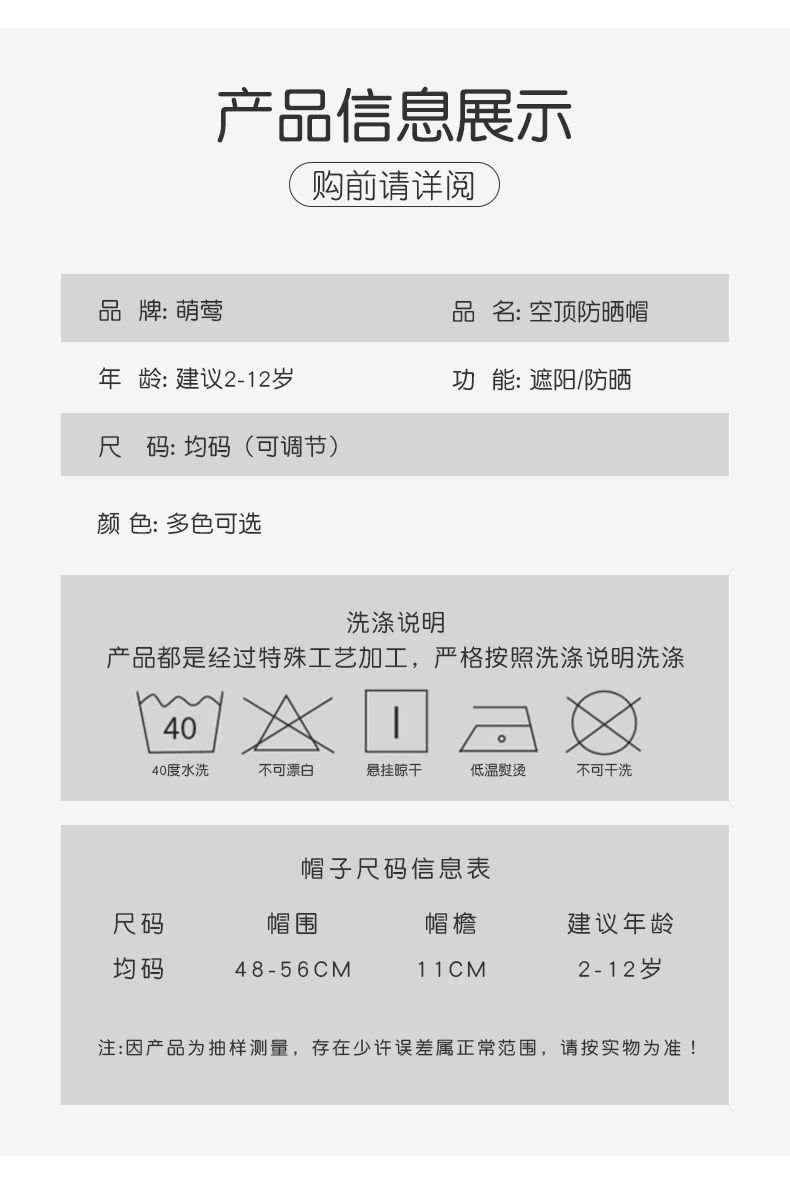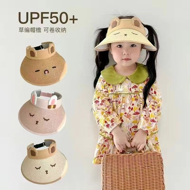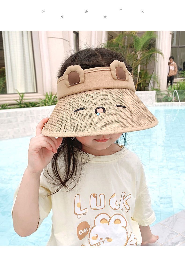 어린이 빈 탑 태양 모자 여름 새로운 태양 보호 모자 만화 빈 탑 모자 태양 모자 큰 챙 UV 보호스토어 가기