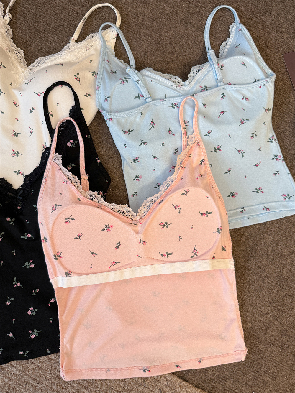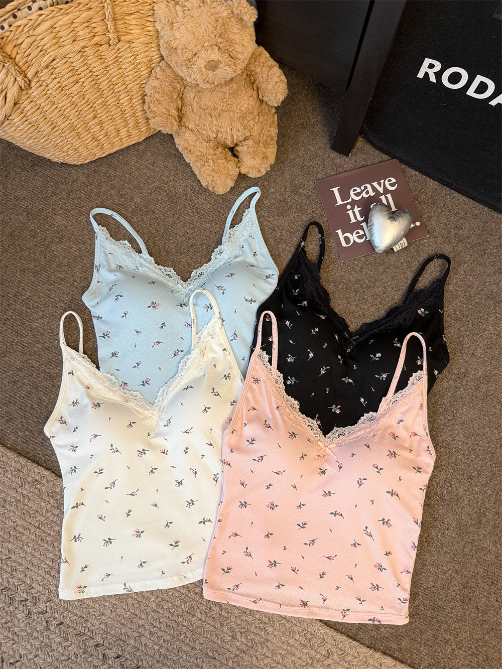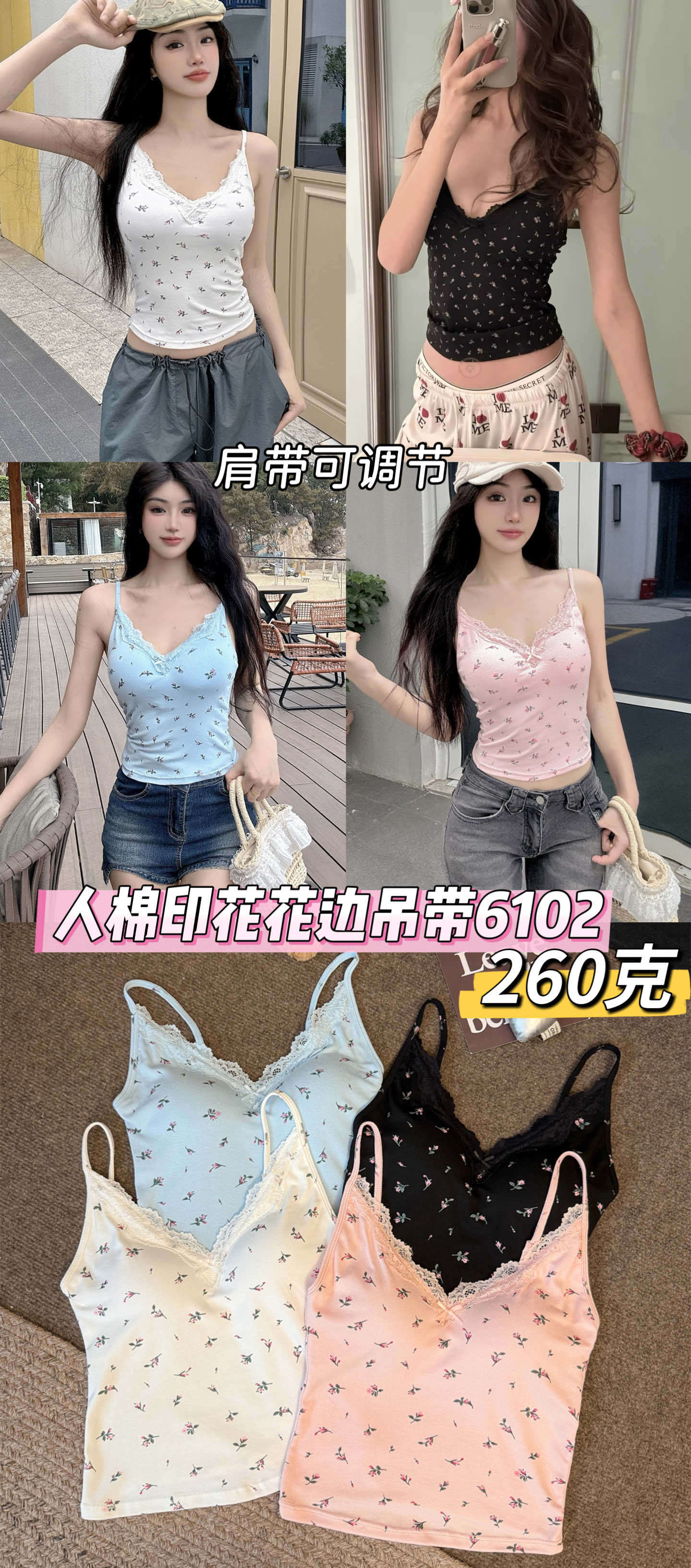 6102 # 섹시한 뜨거운 소녀 레이스 스플 라이스 v 넥 캐미솔 여성 여름 달콤한 프린트 연령 감소 겉옷 민소매 탑스토어 가기