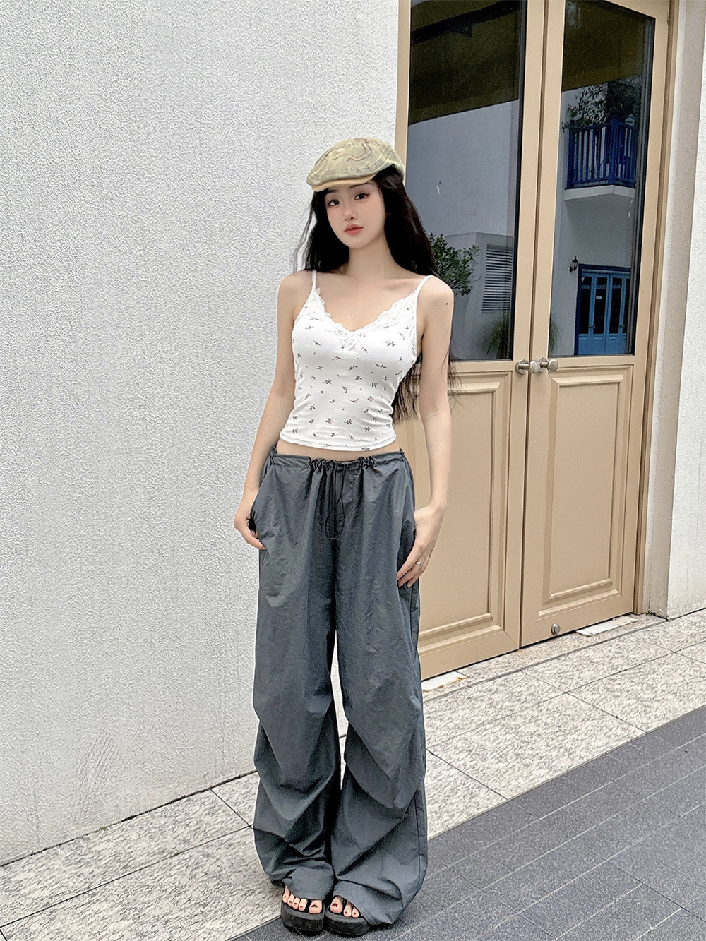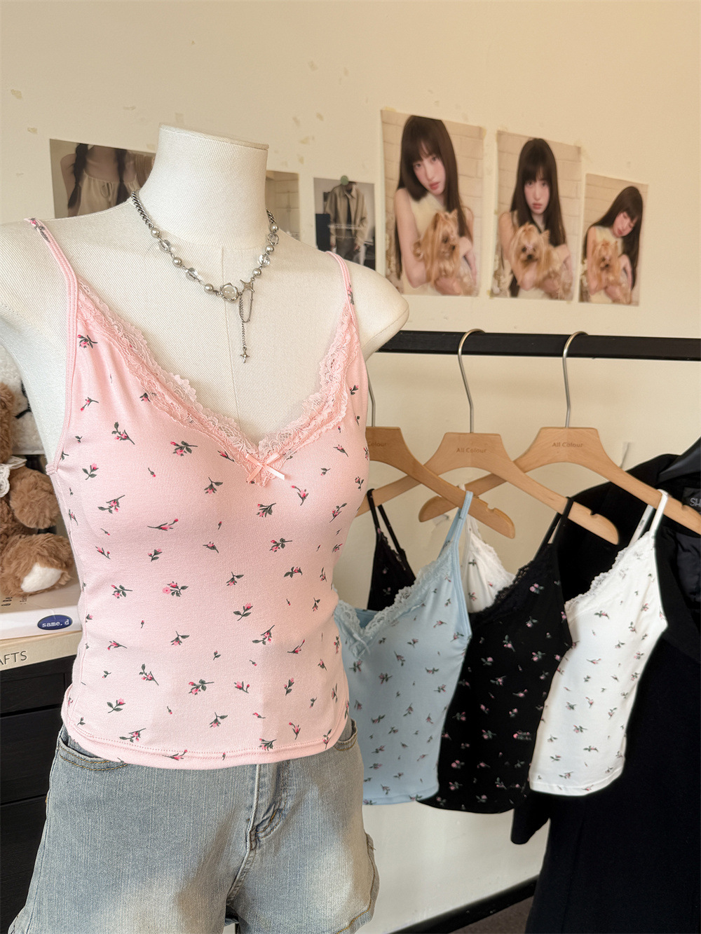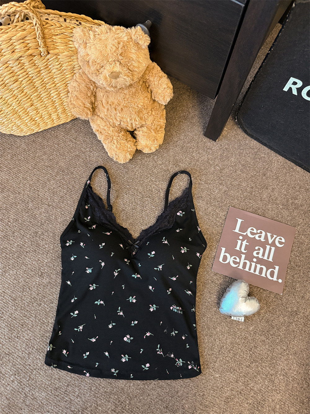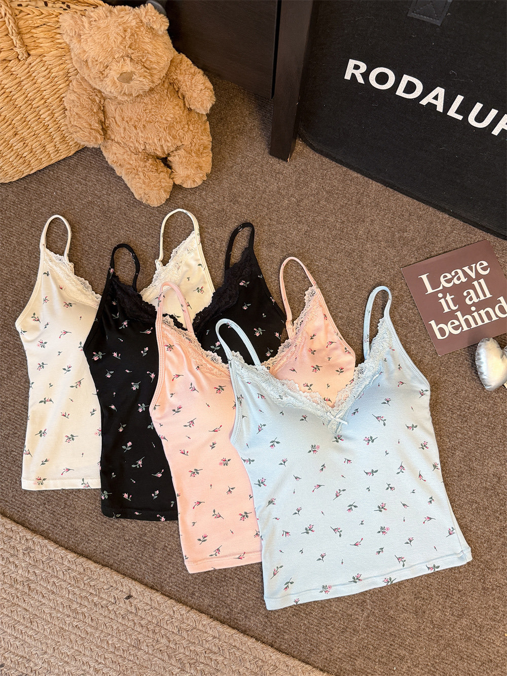 6102 # 섹시한 뜨거운 소녀 레이스 스플 라이스 v 넥 캐미솔 여성 여름 달콤한 프린트 연령 감소 겉옷 민소매 탑스토어 가기