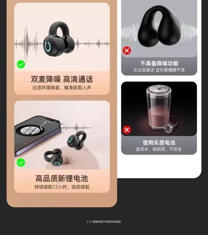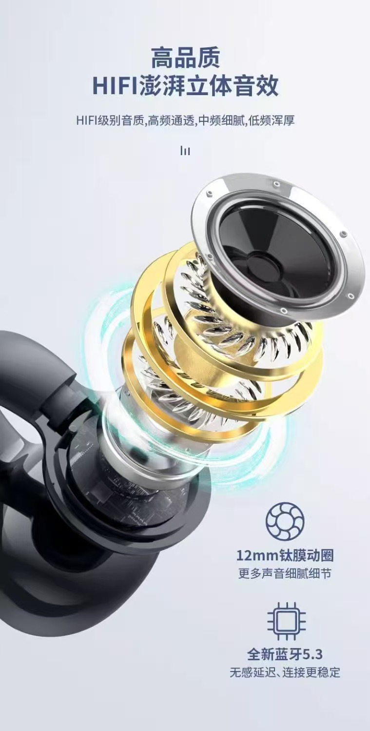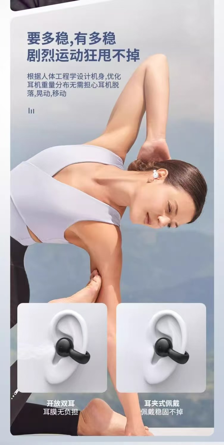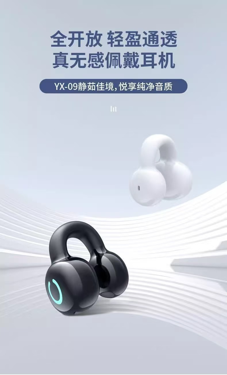 YX09 진정한 무선 블루투스 헤드셋 이어 클립 게임 스포츠 초장기 배터리 수명 초저 지연 국경 간 전자 상거래 핫 모델