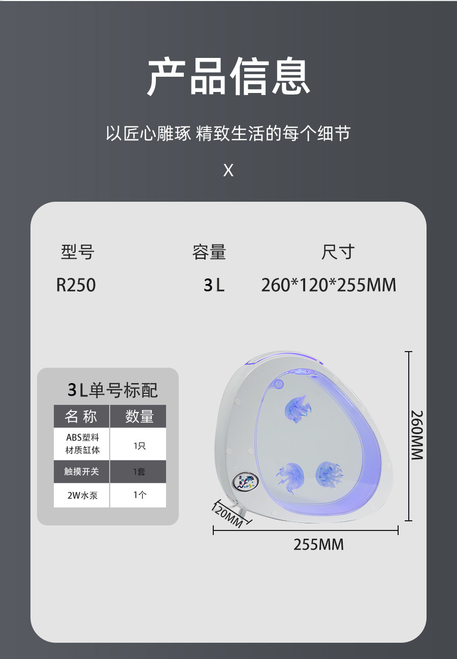 오리지널 제조사 직판 도매 3리터 Q형 해파리 수조(조명, 펌프 포함) 인터넷 인기 상품, 노점상용 해파리 수조, 물갈이 필요 없음스토어 가기