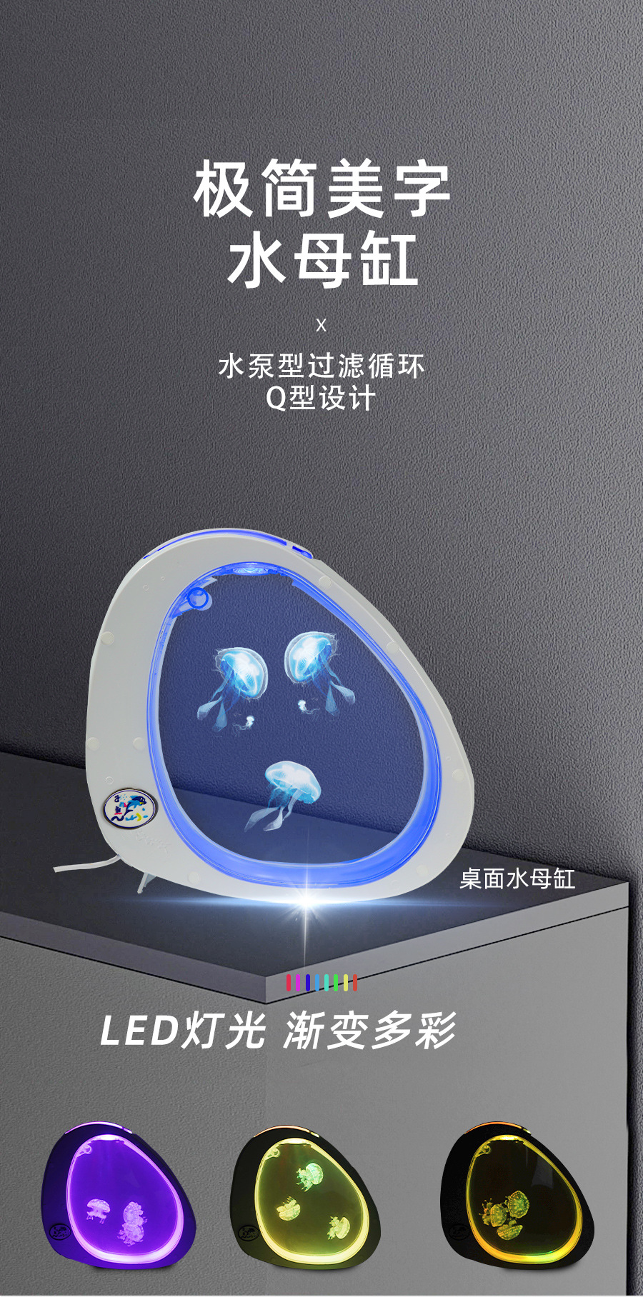오리지널 제조사 직판 도매 3리터 Q형 해파리 수조(조명, 펌프 포함) 인터넷 인기 상품, 노점상용 해파리 수조, 물갈이 필요 없음