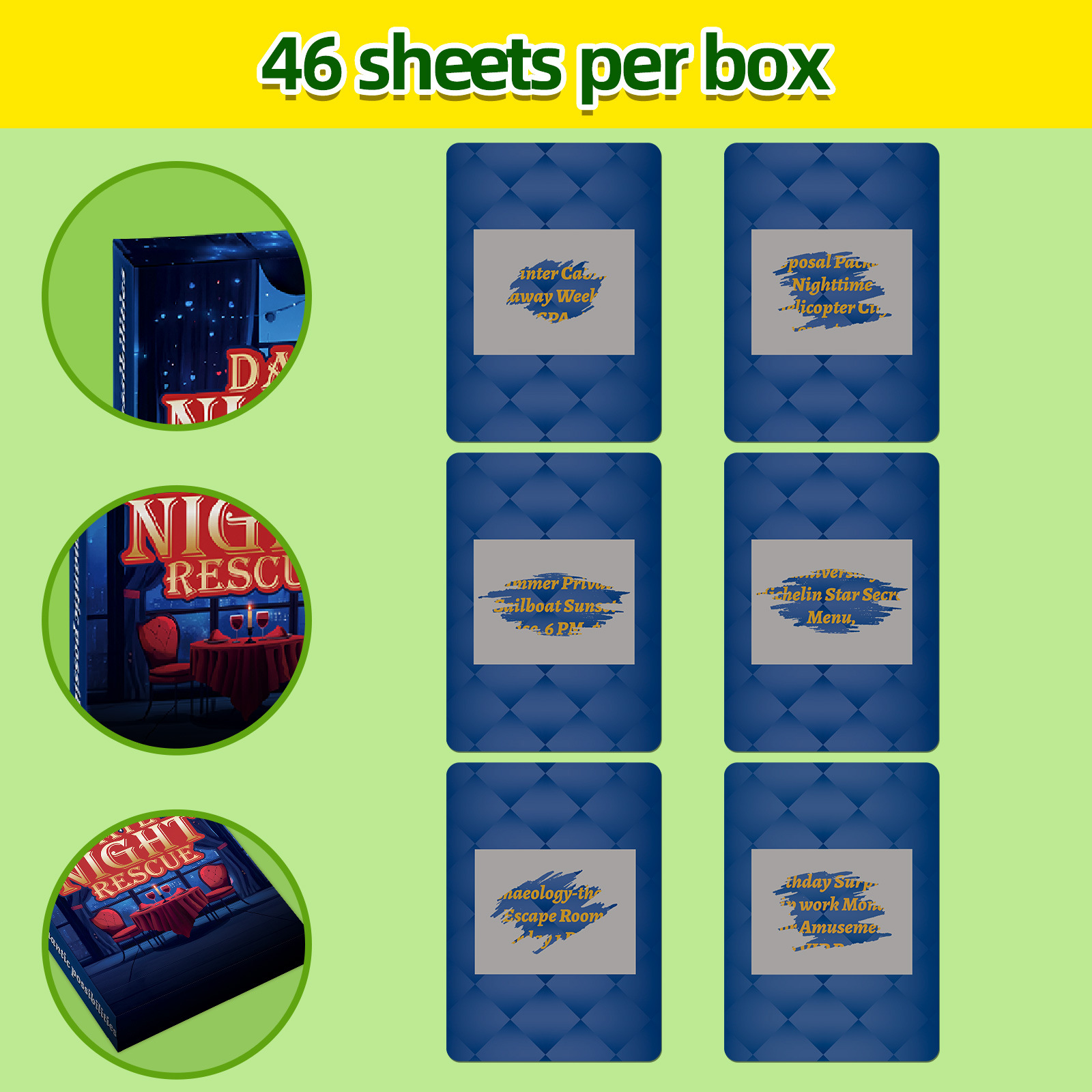 크로스-국경 새로운 46 커플 데이트 아이디어 스크래치 카드 따뜻한 재미 커플 데이트 대화 형 카드 재고 배치