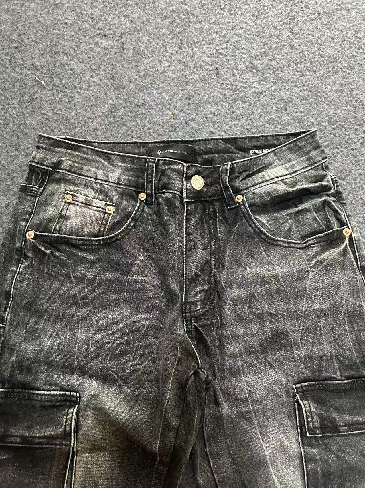 하이 스트리트 청바지 블랙 마이크로 플레어 꽃무늬 대외 무역 P 브랜드 새로운 스트레치 PU 번개 패턴 남성 의류 기타 TEMU 바지스토어 가기