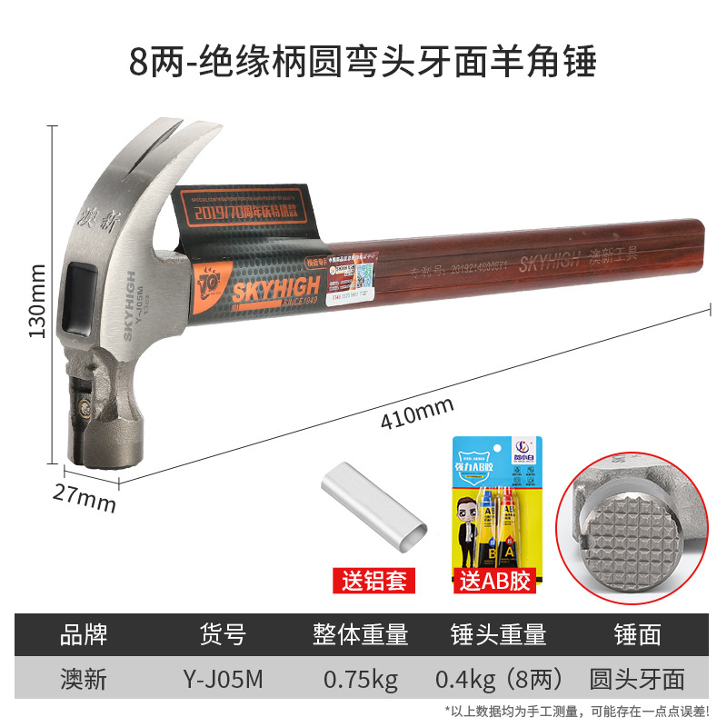 도구, 코너 해머, 특수 강철 절연 손잡이, 목공 망치, 철 망치, 자기 순수 강철 네일 해머, Aoxin