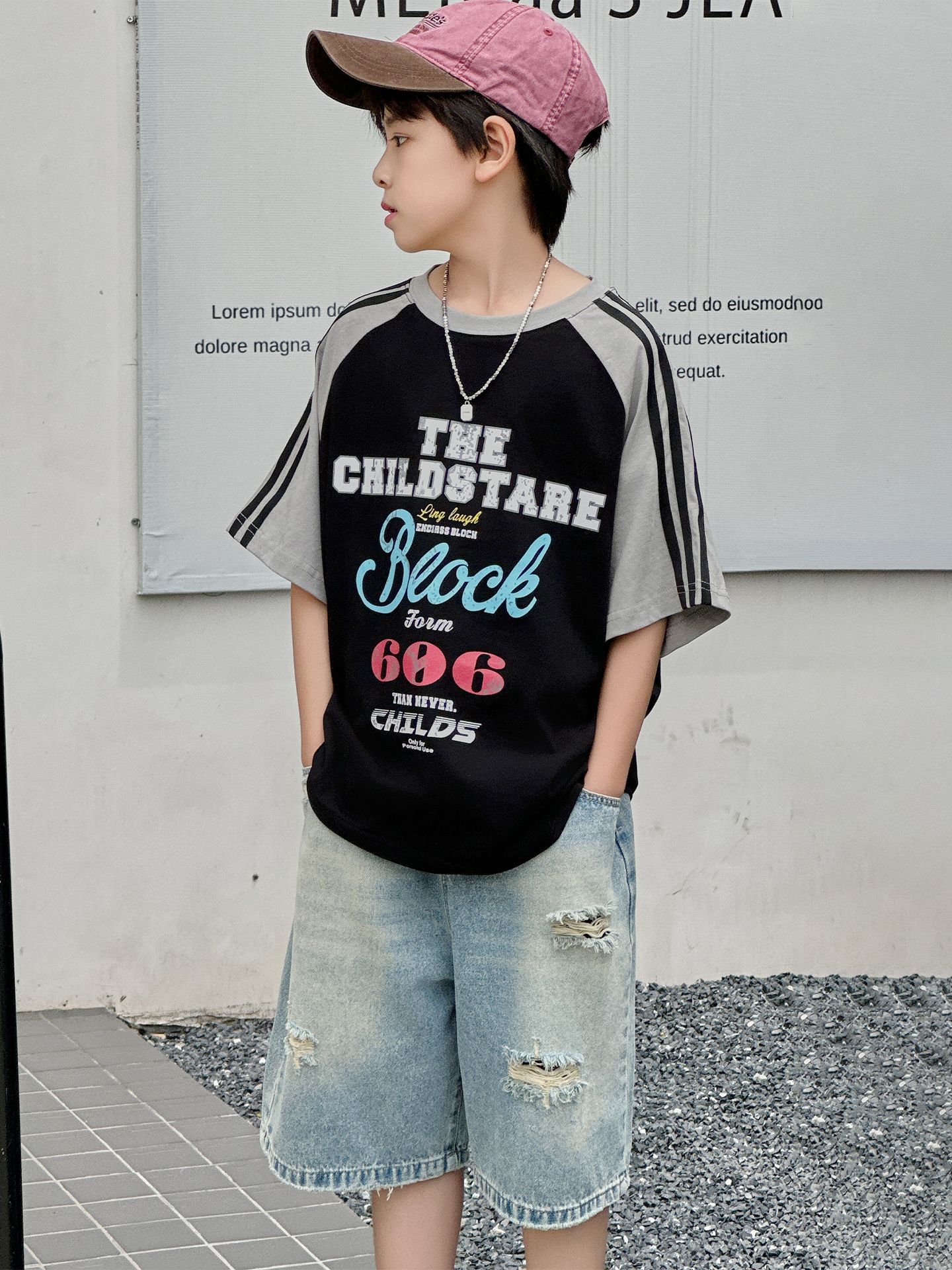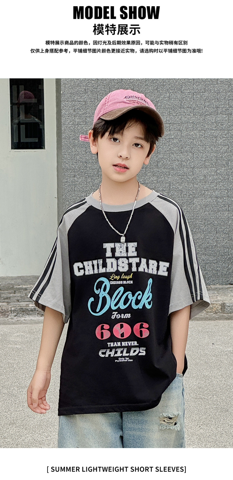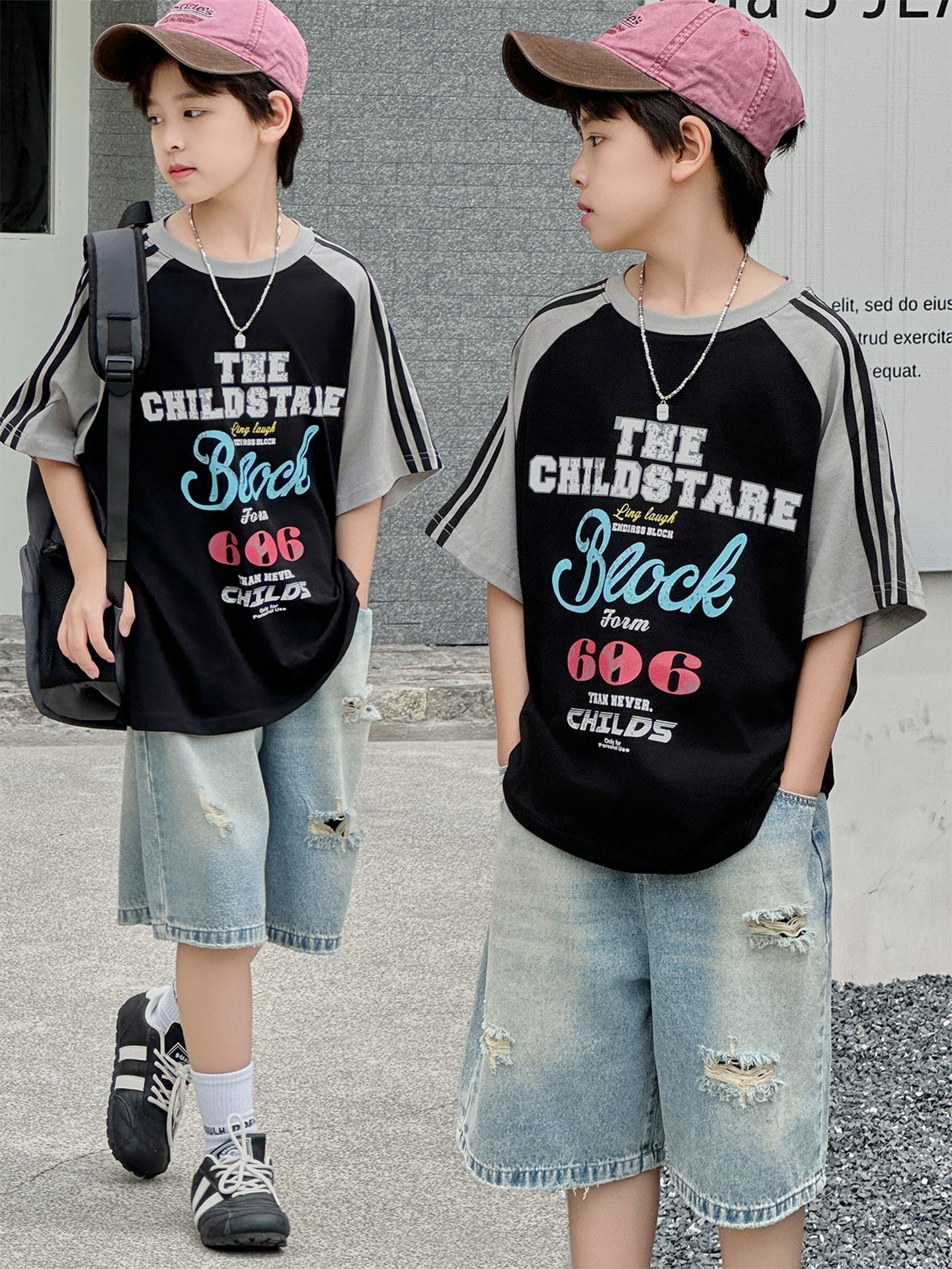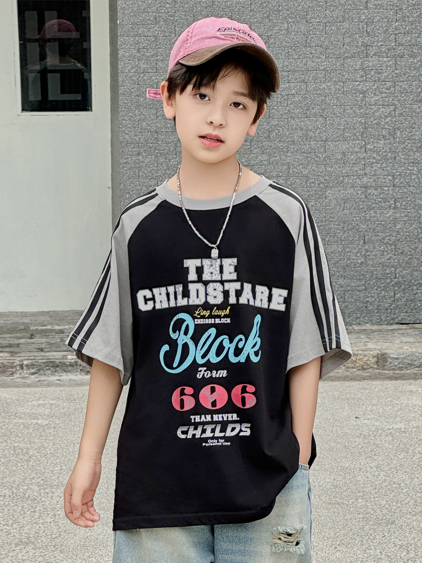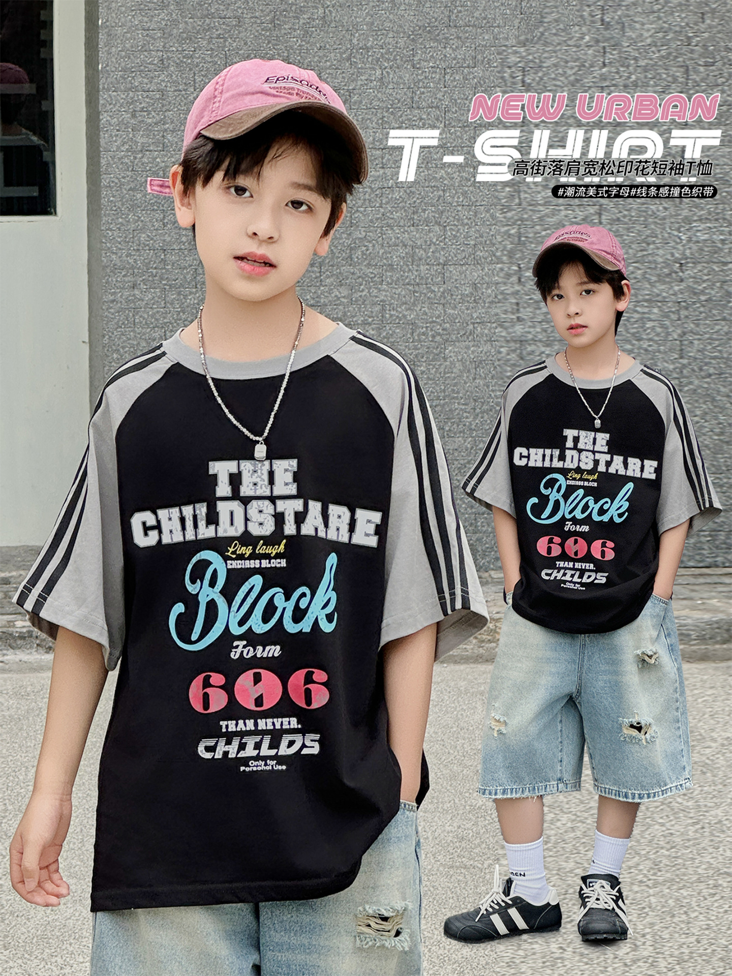 남아용 반팔 티셔츠 2026 여름 신상 한국 스타일 패치워크 프린트 래글런 소매 루즈핏 티셔츠