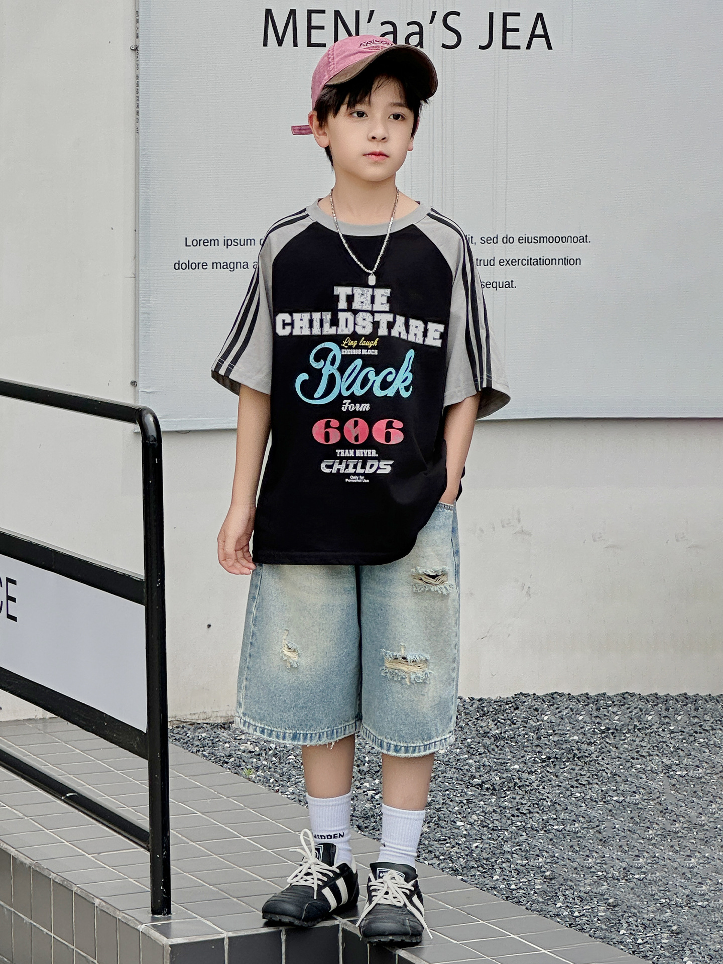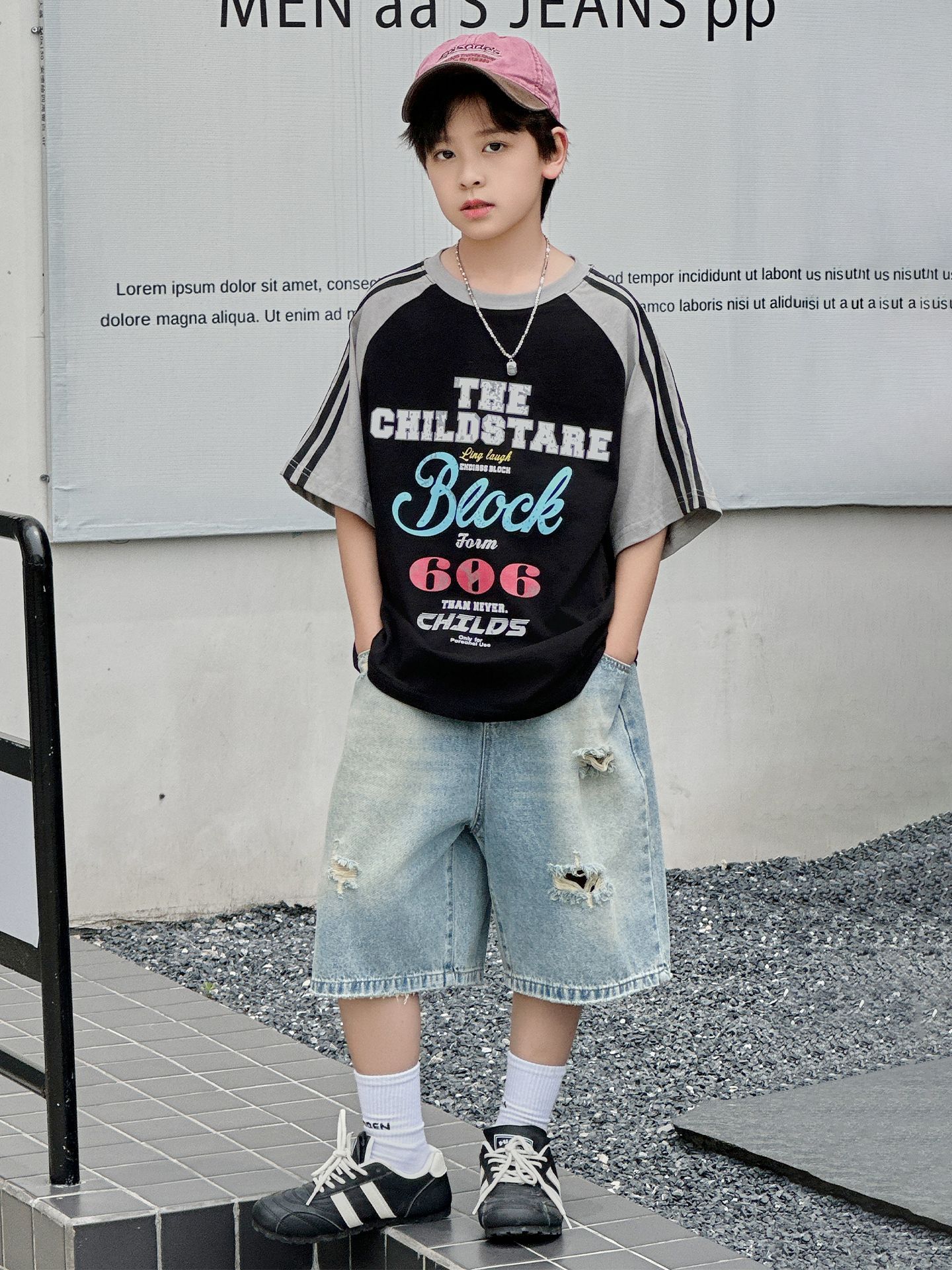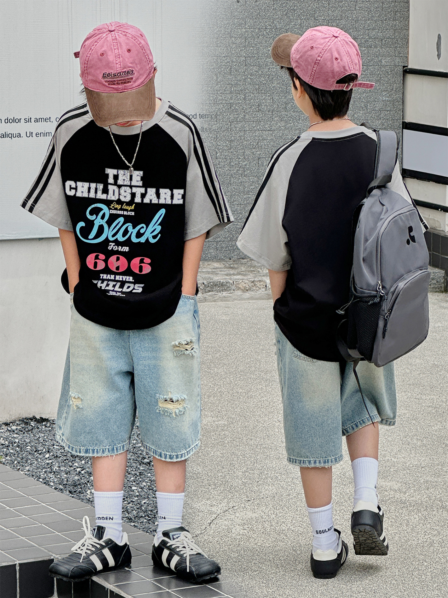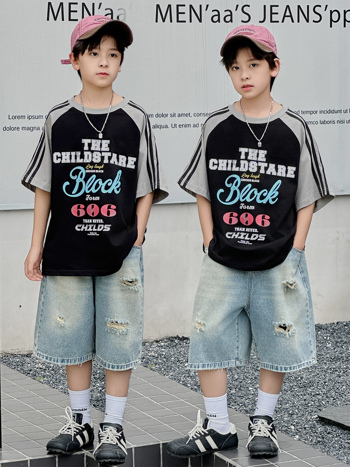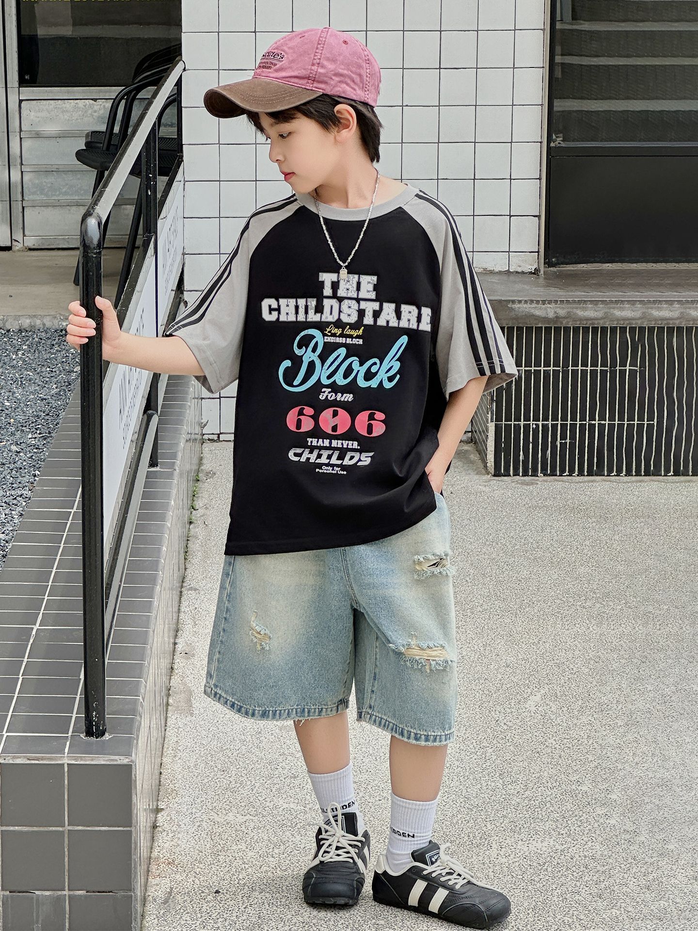 남아용 반팔 티셔츠 2026 여름 신상 한국 스타일 패치워크 프린트 래글런 소매 루즈핏 티셔츠
