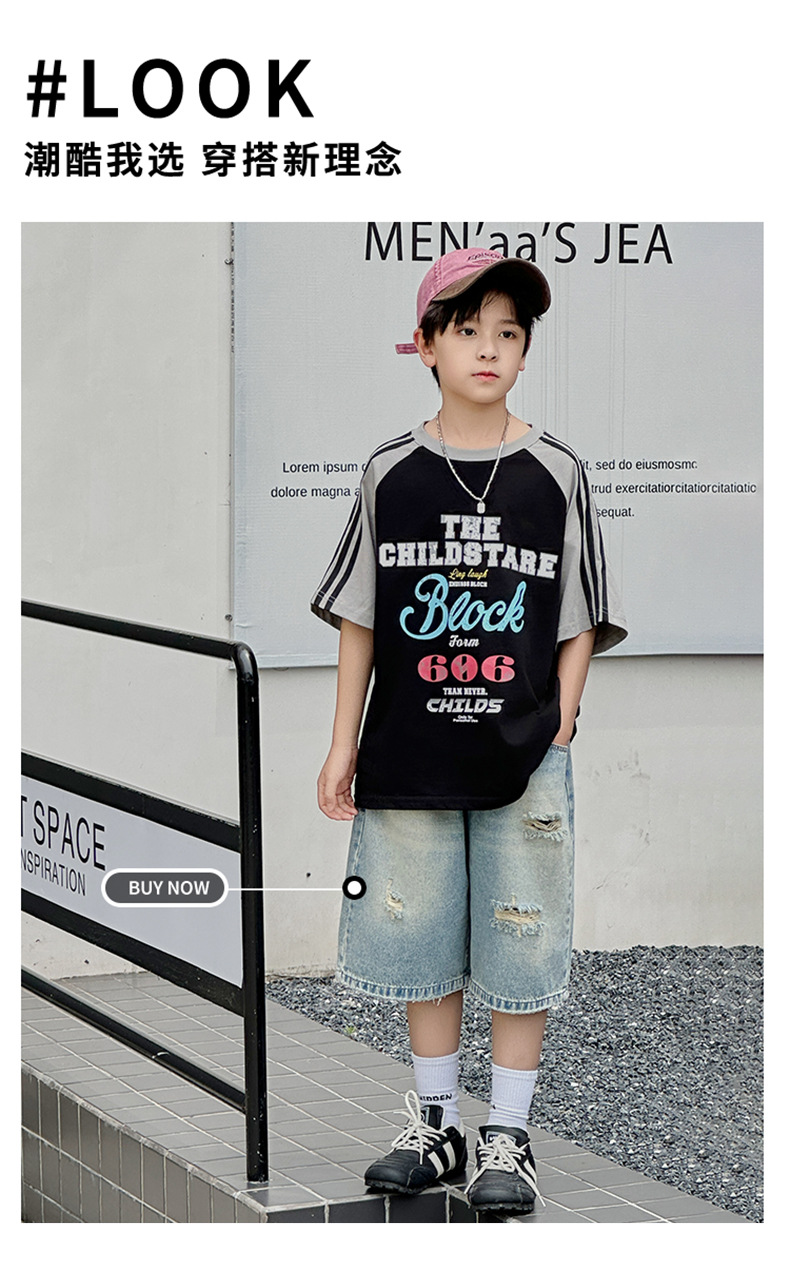 남아용 반팔 티셔츠 2026 여름 신상 한국 스타일 패치워크 프린트 래글런 소매 루즈핏 티셔츠스토어 가기
