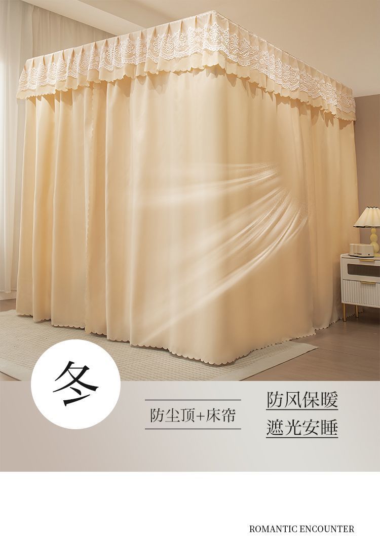 완전 밀폐형 방한 침대 커튼, 방풍, 차광 및 따뜻한 침대 커튼, 가정용 침실 방진 모기장, 1인용 3도어스토어 가기