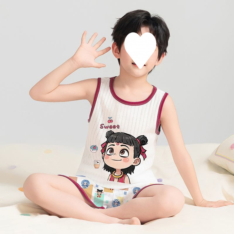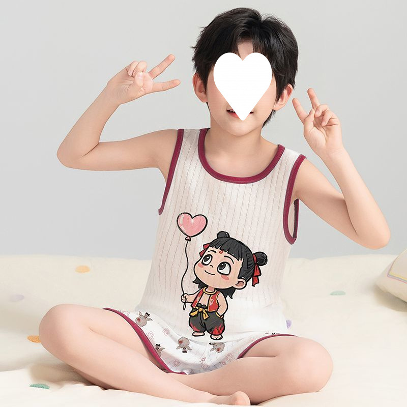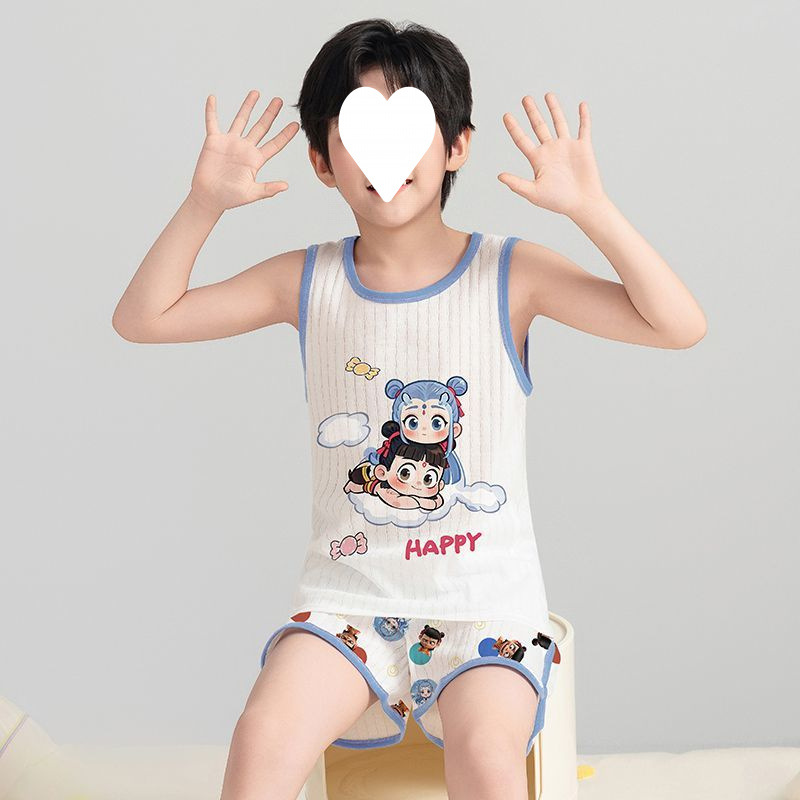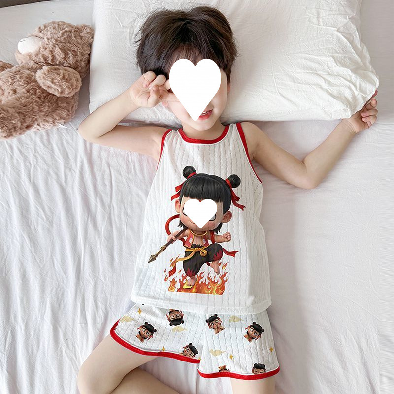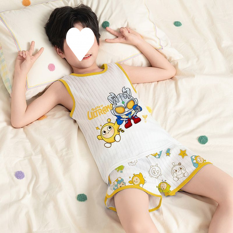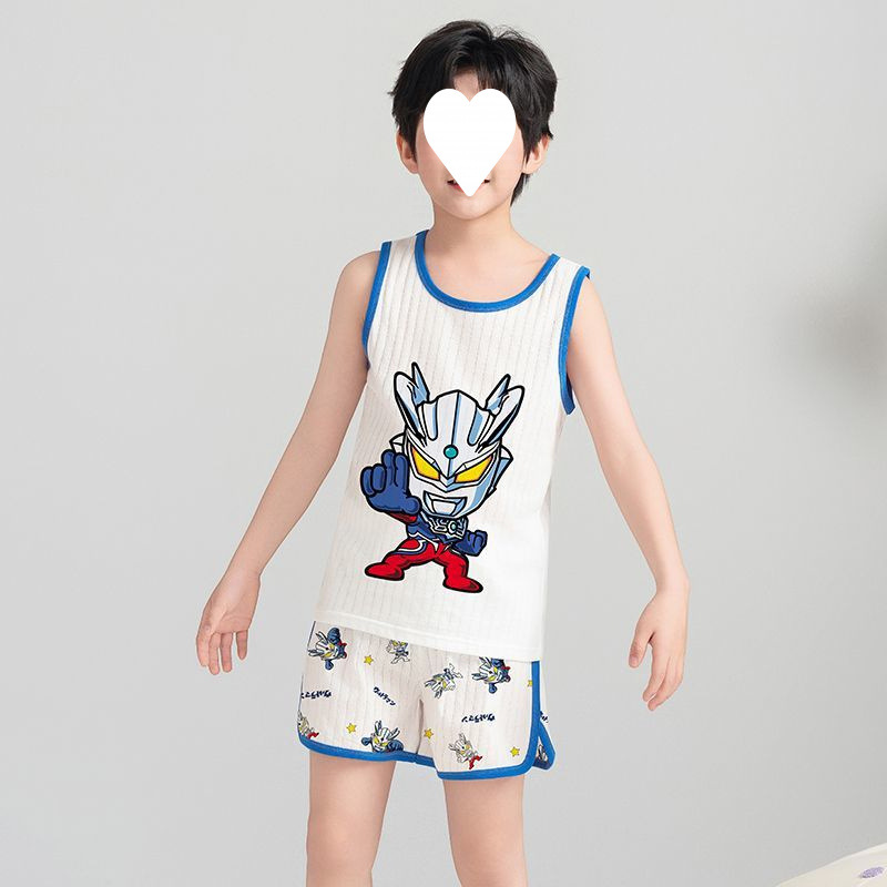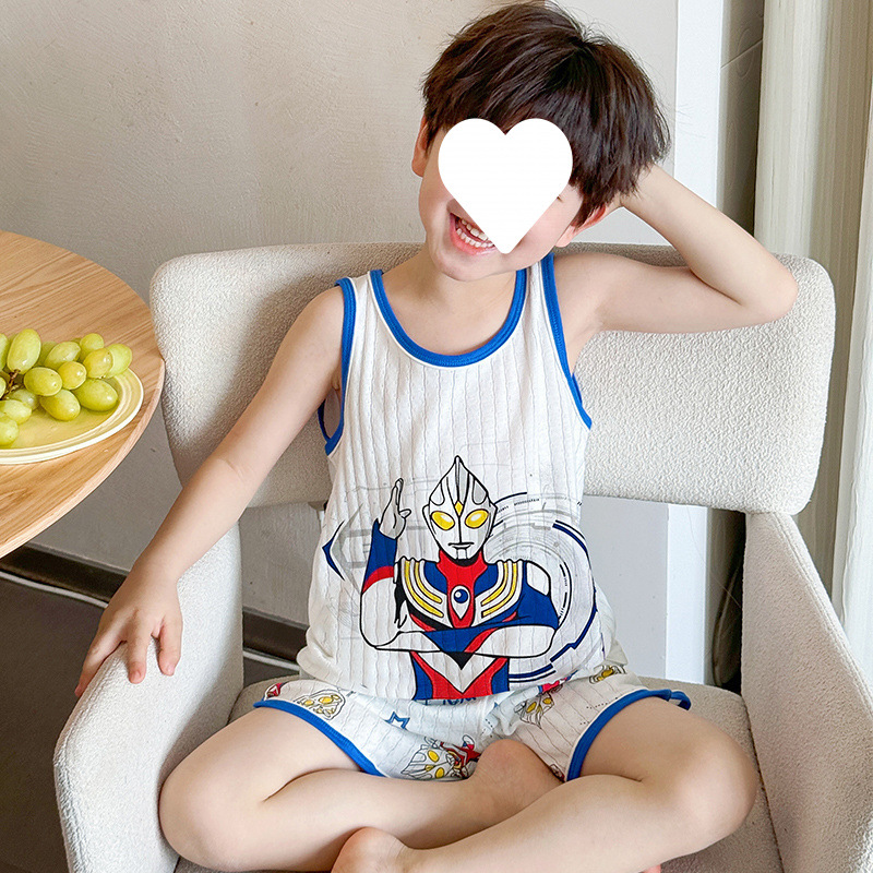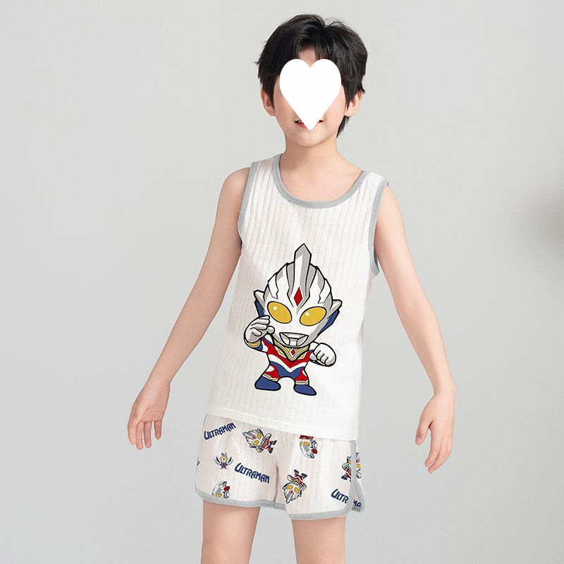 Na Zha 어린이 잠옷 소년 여름 순수 코튼 얇은 조끼 울트라 맨 만화 아기 여름 홈 의류 세트
