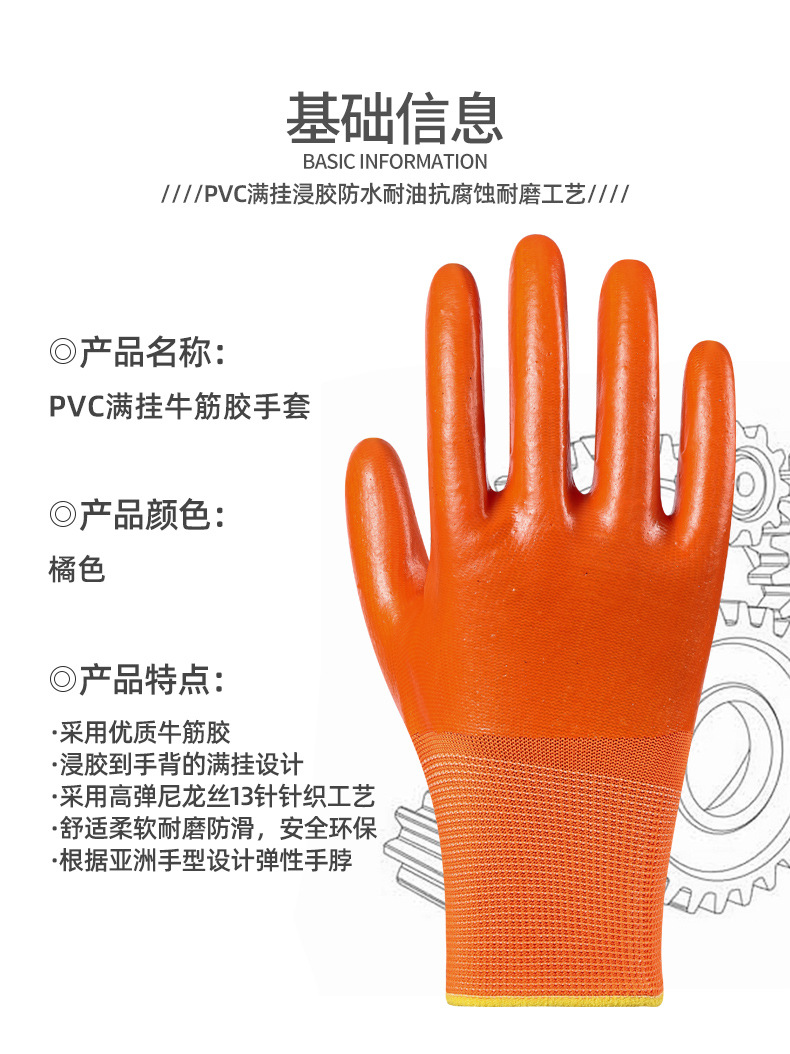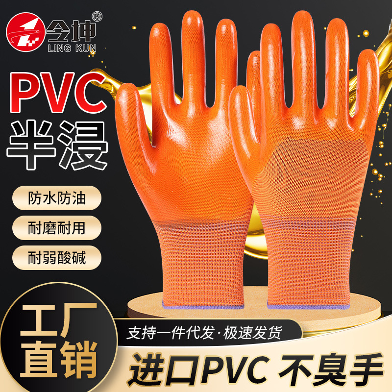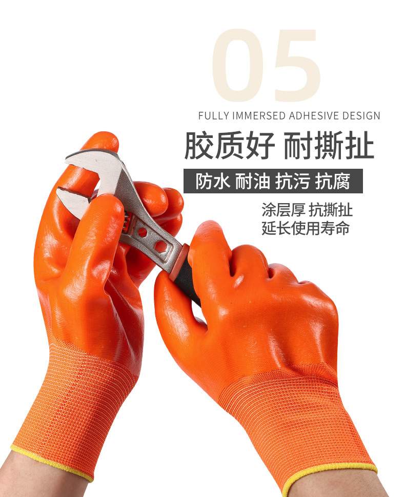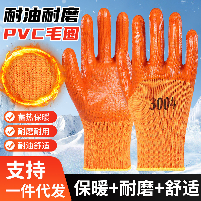 반침 PVC 내유성 장갑, 내마모성, 미끄럼 방지, 방수, 두껍고 따뜻한 건설 현장 유지 보수 보호 노동 장갑