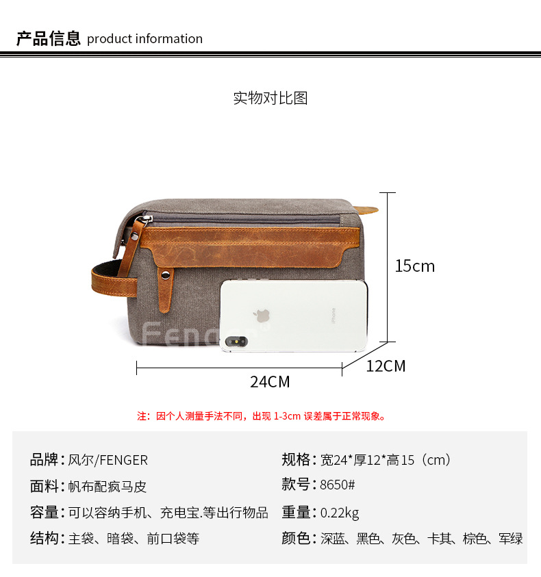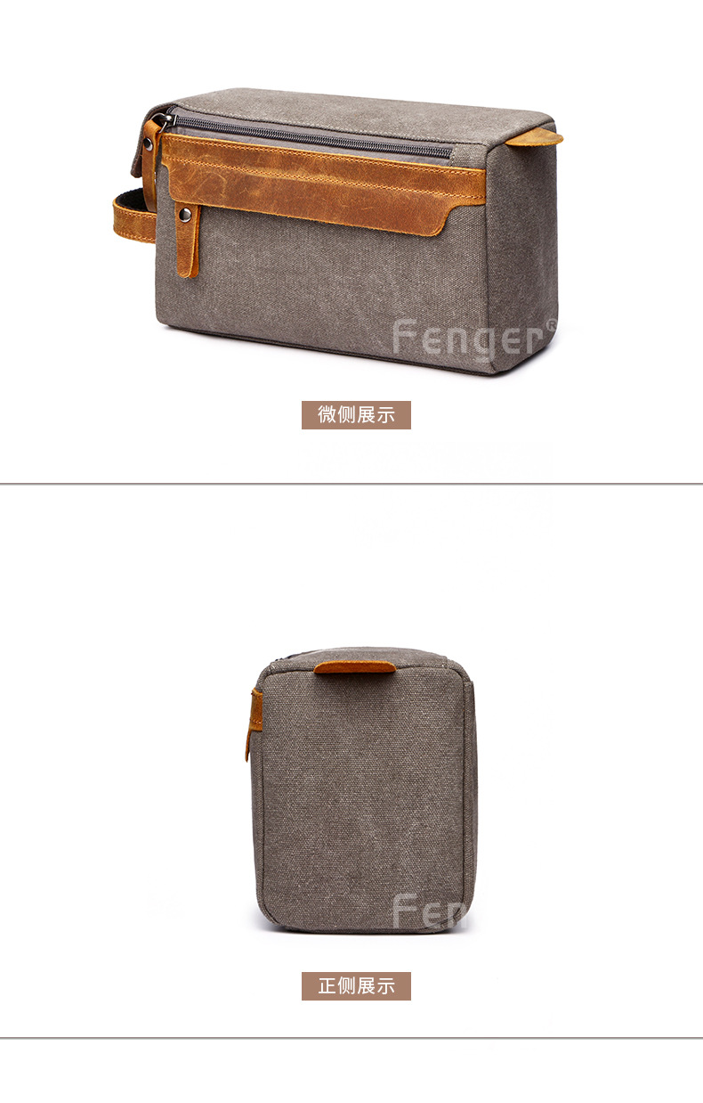 신형 국경 간 유럽 및 미국 여행 휴대용 대용량 수납 가방 출장 휴대용 캔버스와 크레이지 호스 가죽 세면 용품 가방스토어 가기