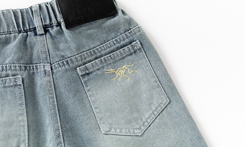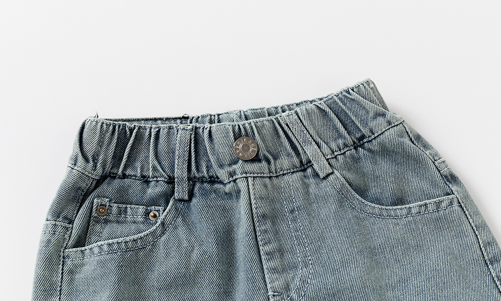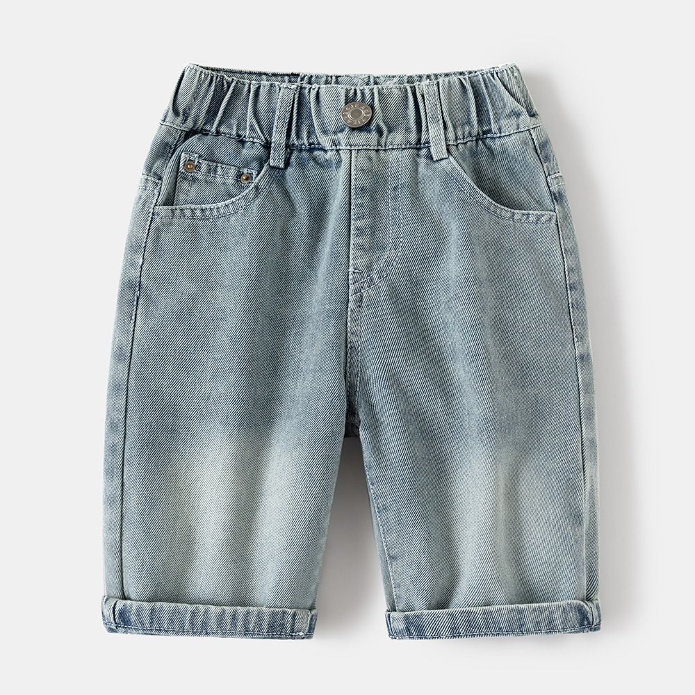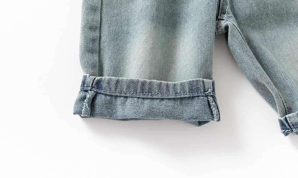 소년과 아동 의류 2025 여름 새로운 어린이 데님 반바지 중대형 어린이 여름 만화 수 놓은 데님 반바지스토어 가기