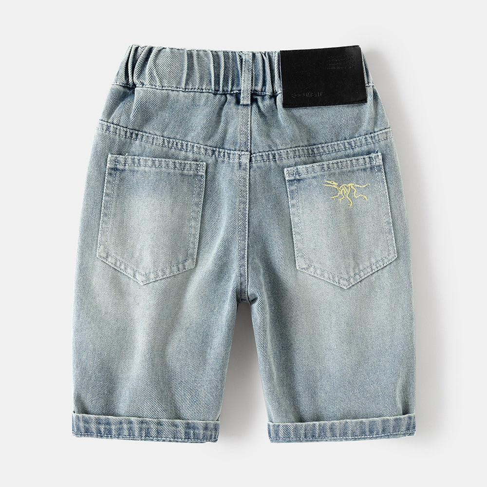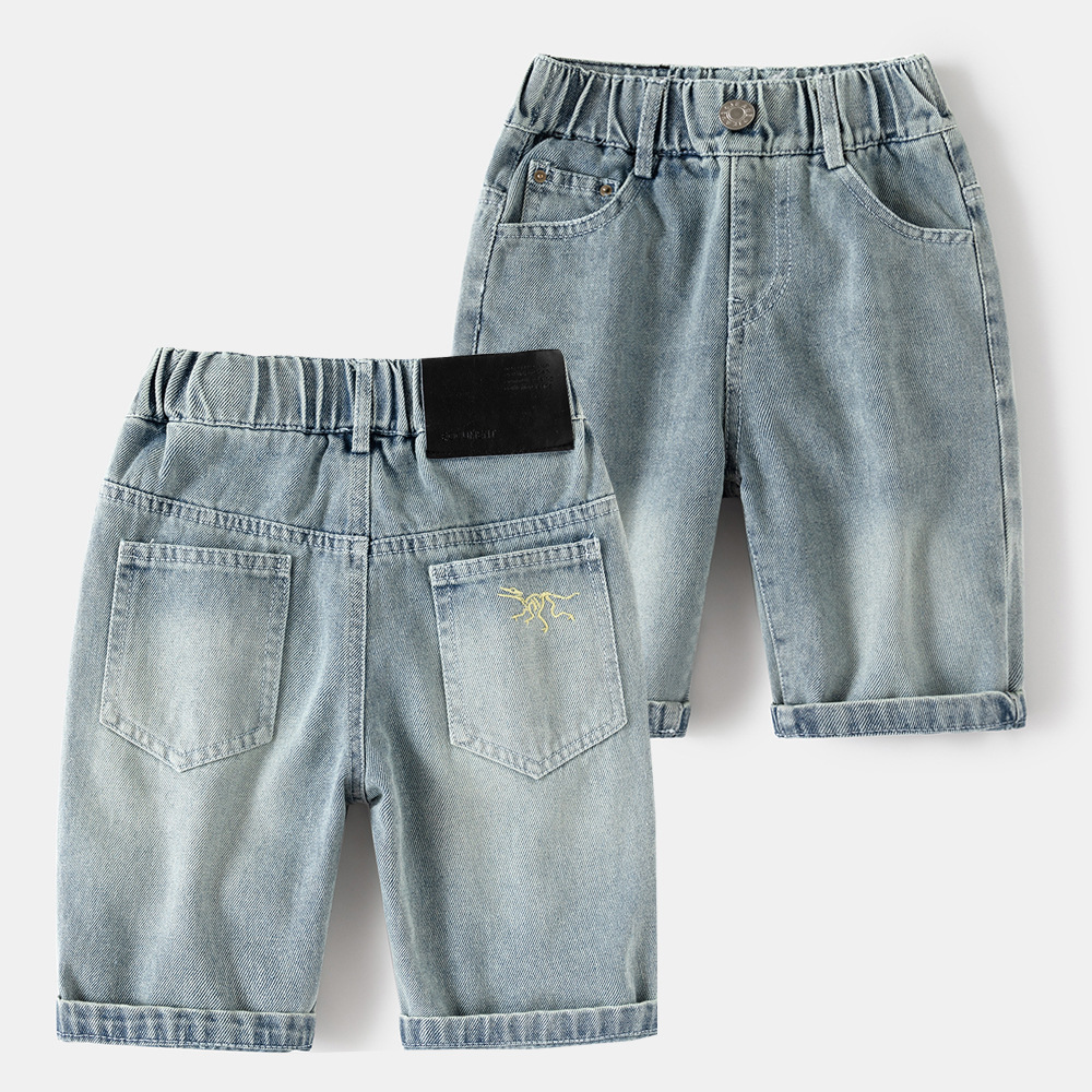 소년과 아동 의류 2025 여름 새로운 어린이 데님 반바지 중대형 어린이 여름 만화 수 놓은 데님 반바지
