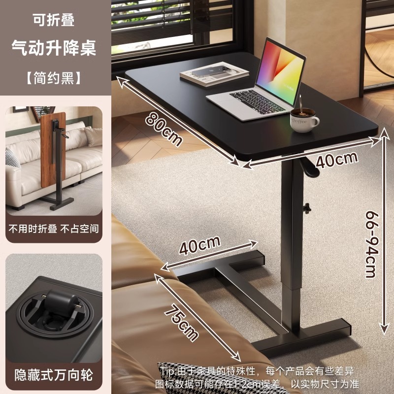 • ️[공압 리프트 - 신제품 업그레이드 데스크탑 확대] 접이식 - 검정색 검정색 프레임 - 숨겨진 바퀴(이동 가능)