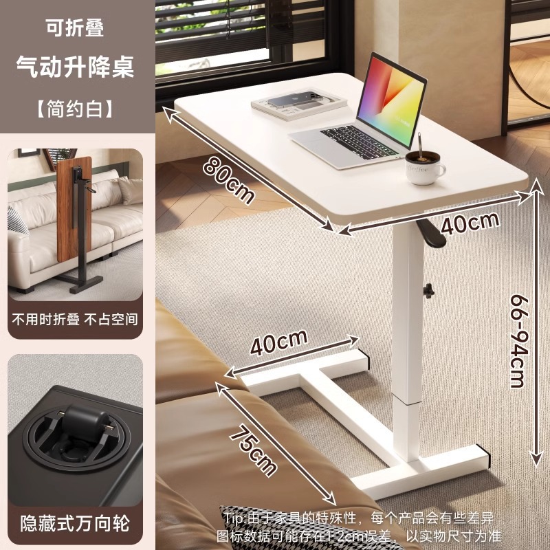 • ️[공압 리프트 - 신제품 업그레이드 데스크탑 확대] 접이식 - 흰색 흰색 프레임 - 숨겨진 바퀴(이동 가능)
