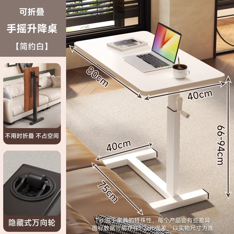 • [핸드크랭크 리프팅 데스크탑 확대] 접이식 - 흰색 - 흰색 프레임 - 숨겨진 바퀴(탈착 가능)