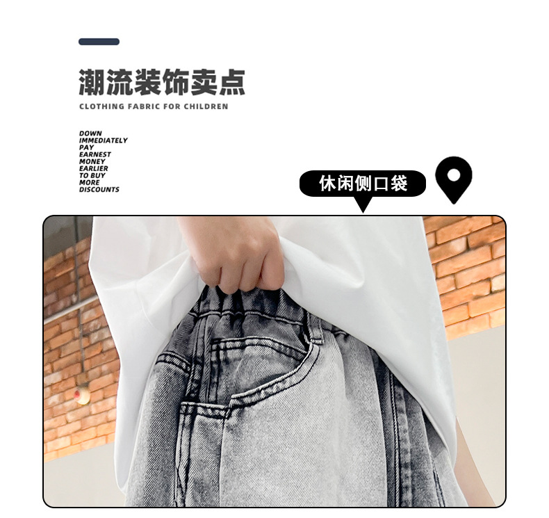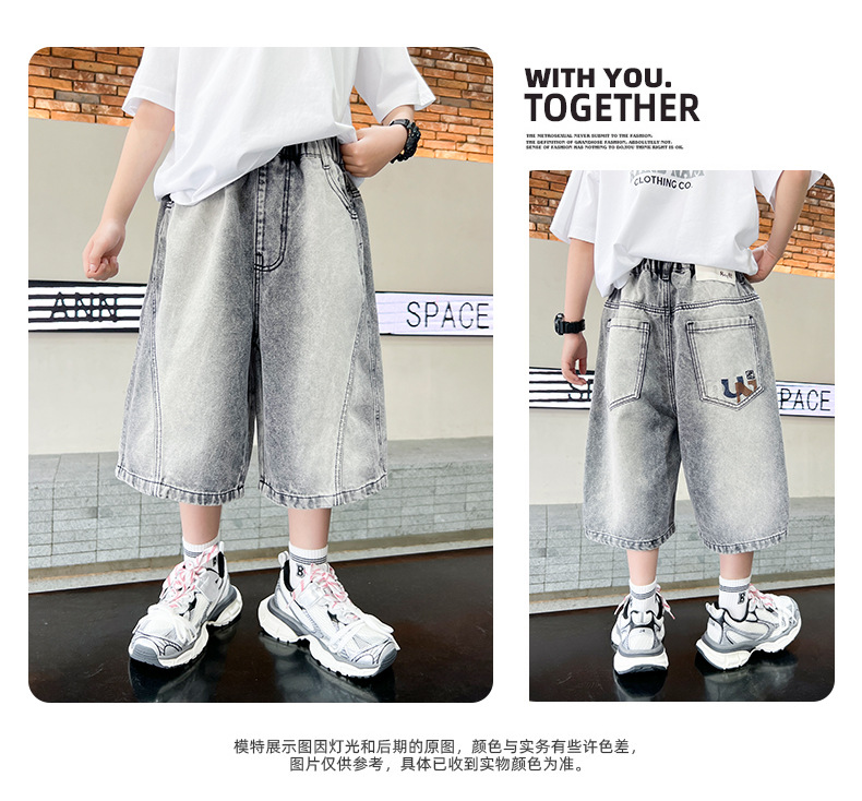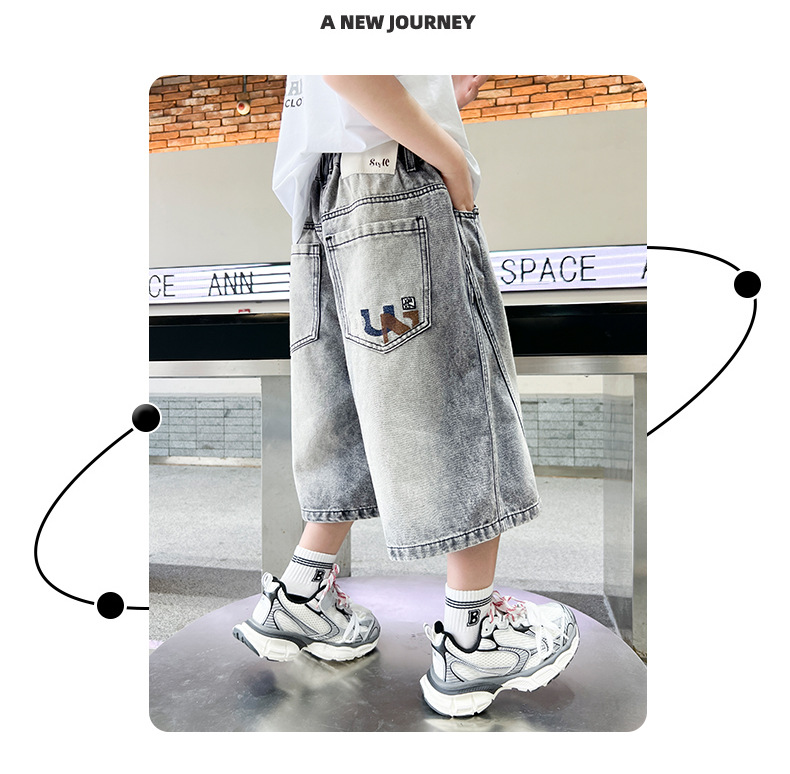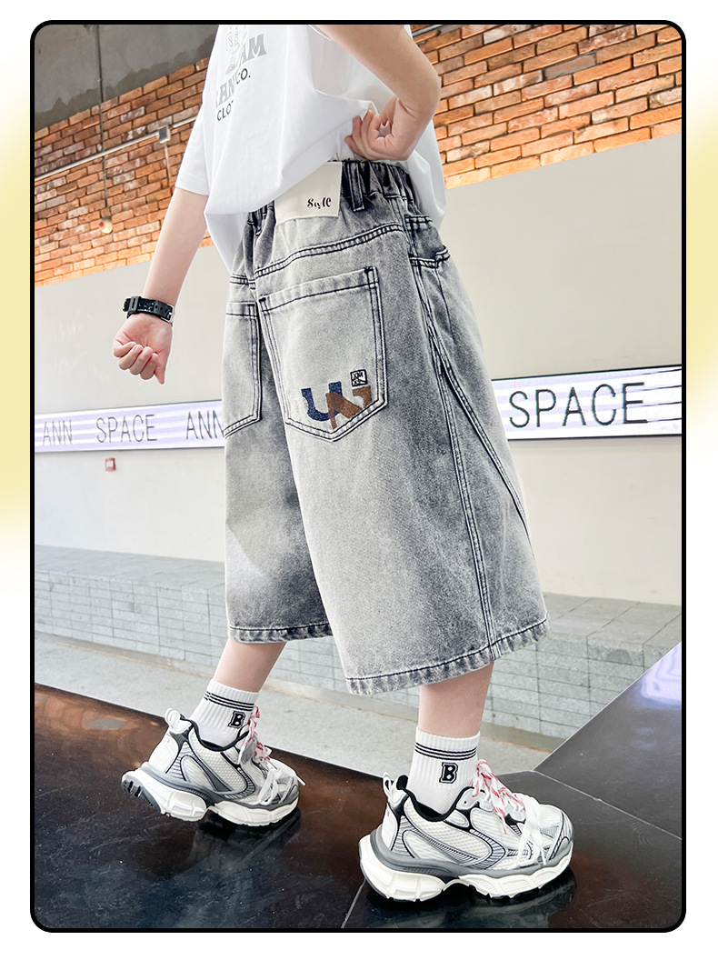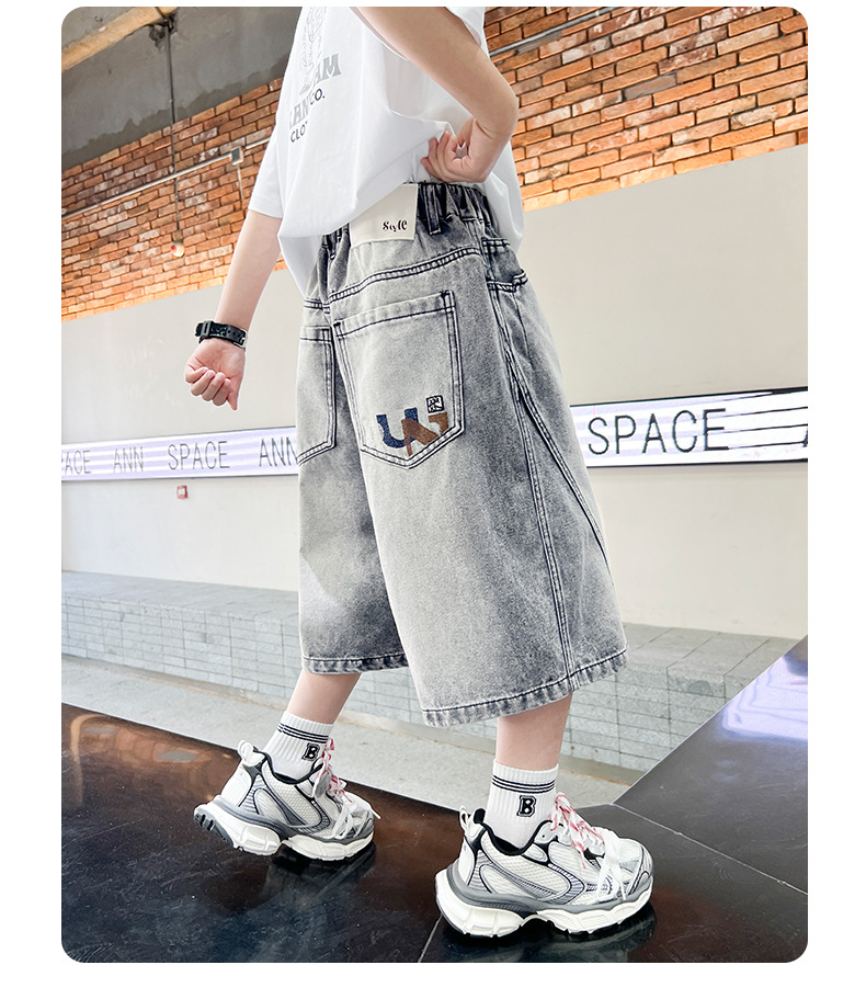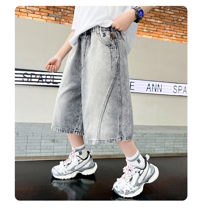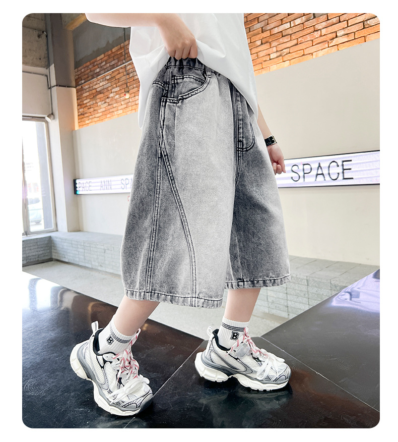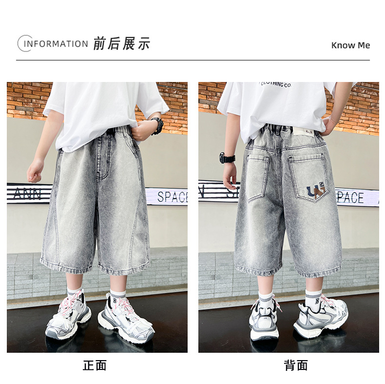 소년 여름 느슨한 데님 반바지 2025 새로운 어린이 중간 길이 바지 소년 중대형 어린이 여름 바지 얇은스토어 가기
