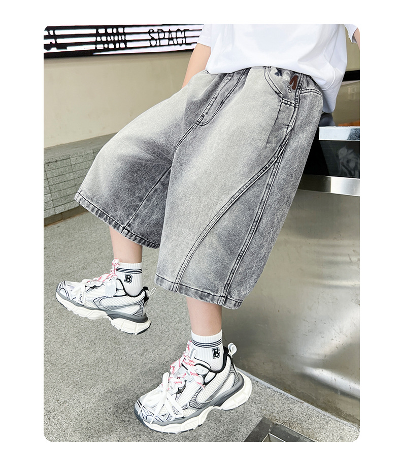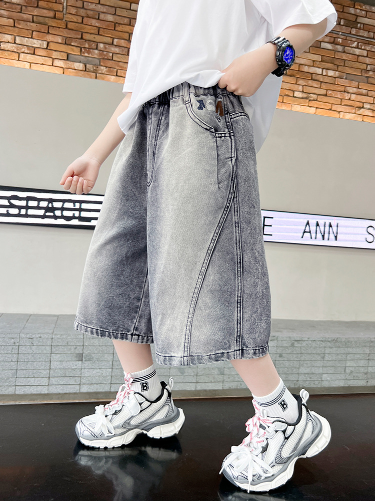 소년 여름 느슨한 데님 반바지 2025 새로운 어린이 중간 길이 바지 소년 중대형 어린이 여름 바지 얇은