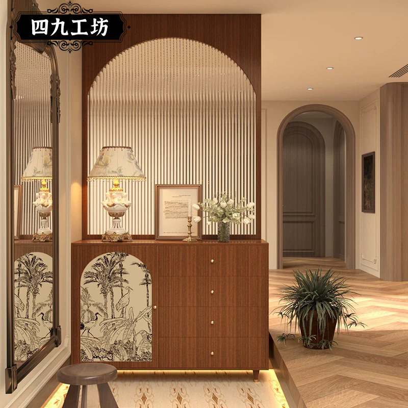 프랑스 복고풍 스크린 파티션 거실 유리 입구 캐비닛 장식 입구 도어 차단 서랍 보관 올인원 캐비닛