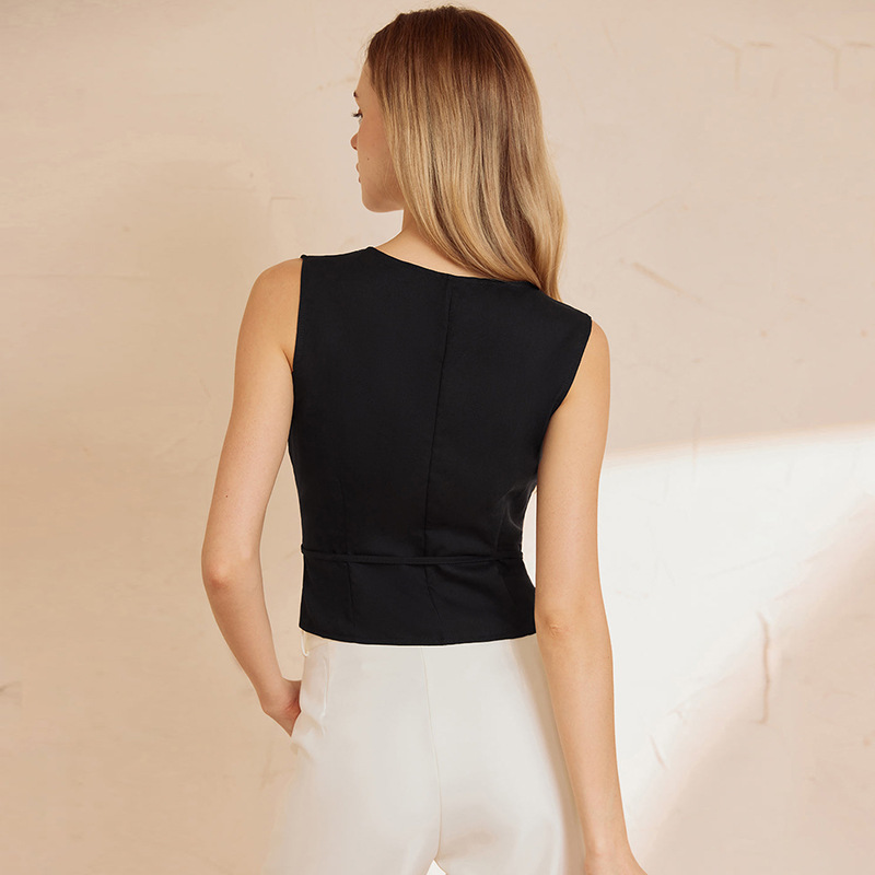 유럽과 미국의 여성 의류 아마존 국경 대외 무역 여름 새로운 올드 머니 스타일 블랙 레이스 캐주얼 조끼 250272