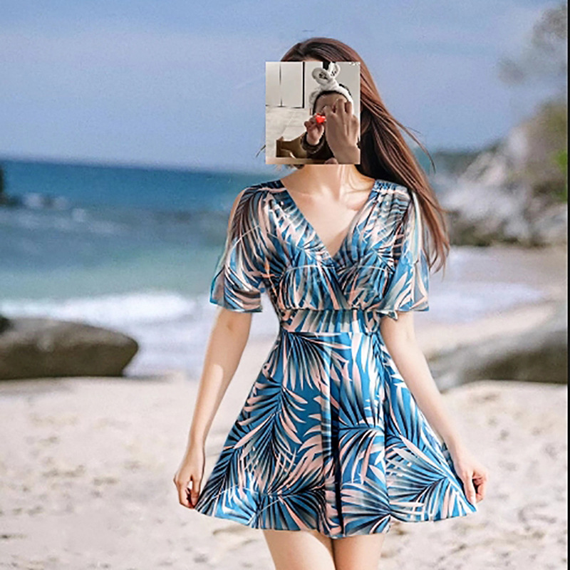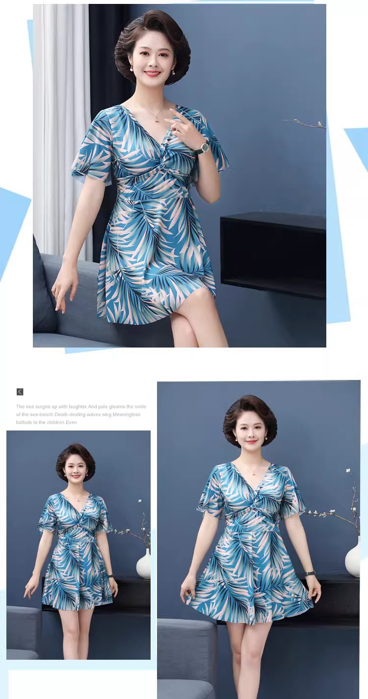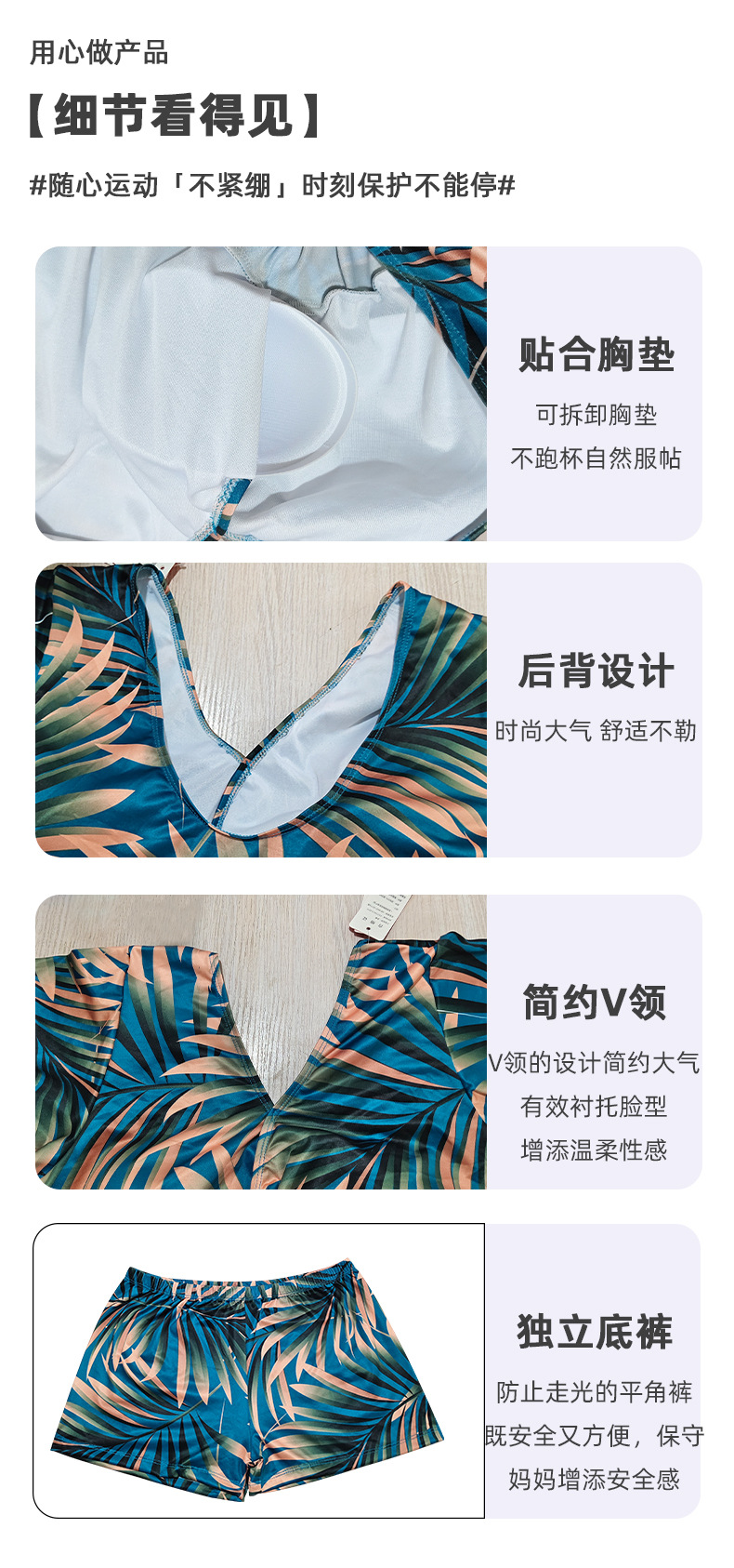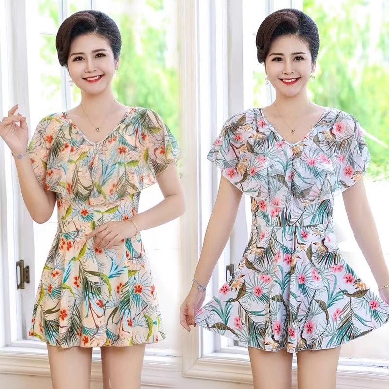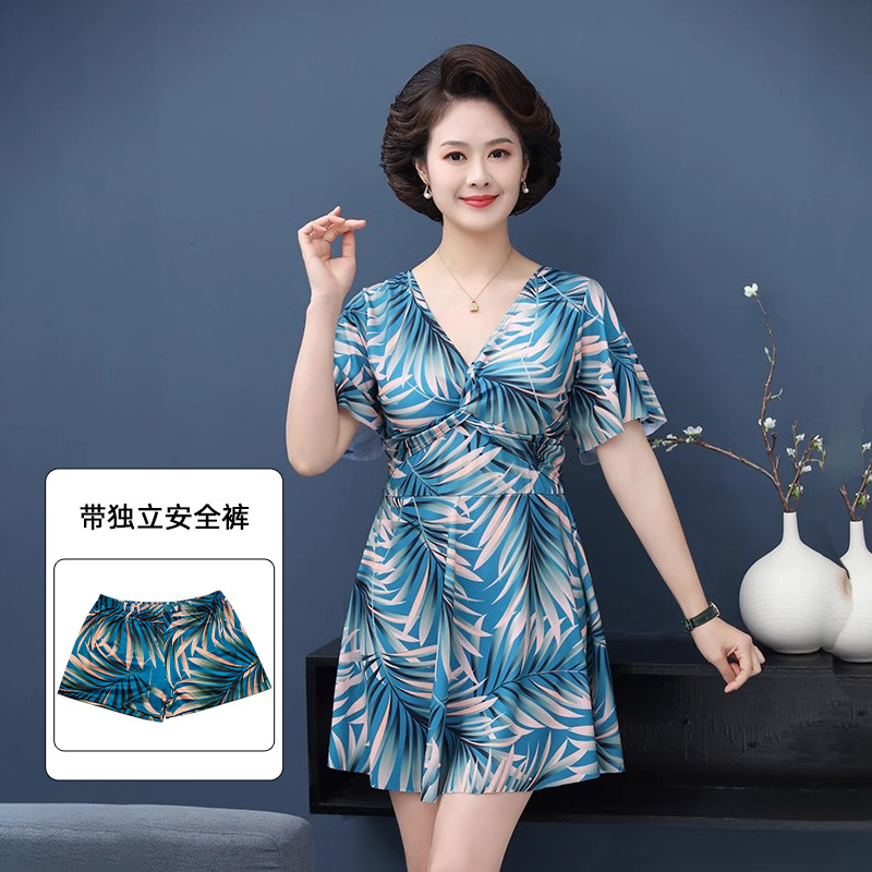 중노년 여성 수영복, 배를 커버해 날씬해 보이는 보수적인 스커트 스타일 스플릿 복서 팬티, 엄마 스타일 플러스 사이즈 수영복