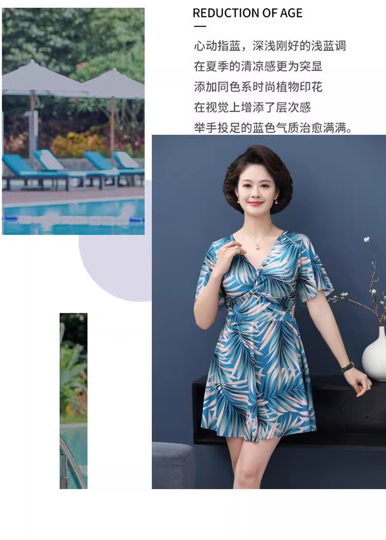 중노년 여성 수영복, 배를 커버해 날씬해 보이는 보수적인 스커트 스타일 스플릿 복서 팬티, 엄마 스타일 플러스 사이즈 수영복스토어 가기