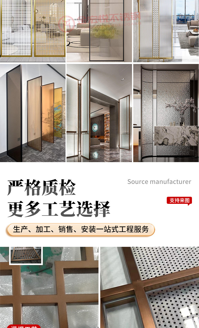 스테인레스 스틸 유리 스크린 클럽 호텔 아트 유리 스크린 파티션 레스토랑 입구 입구 배경 벽