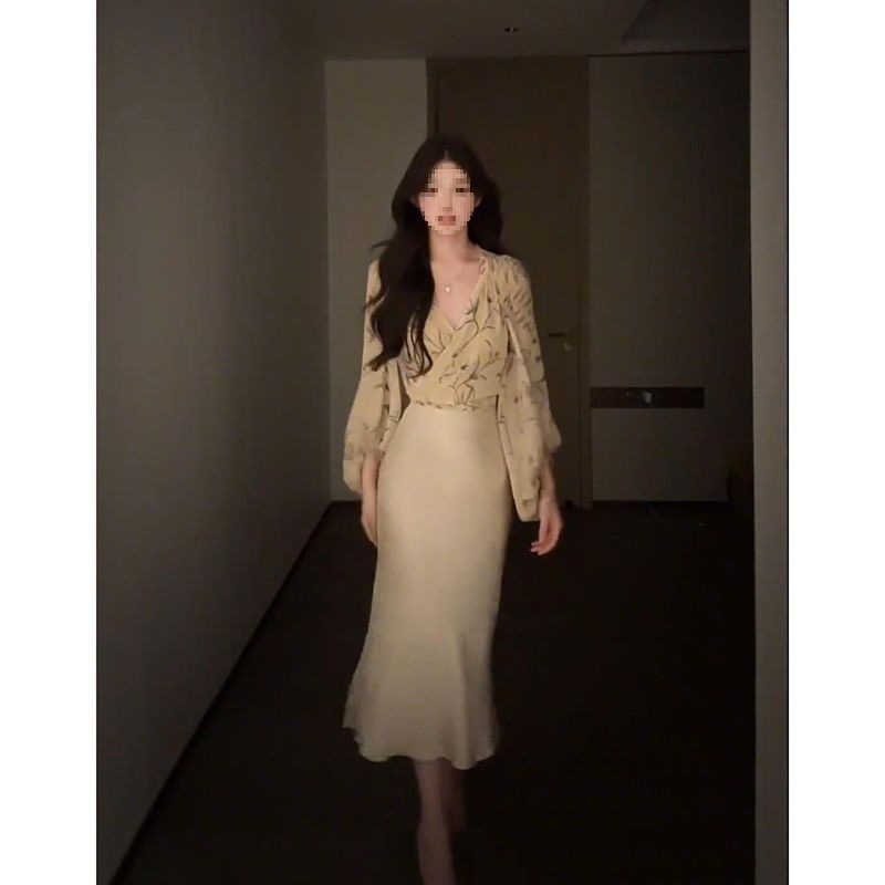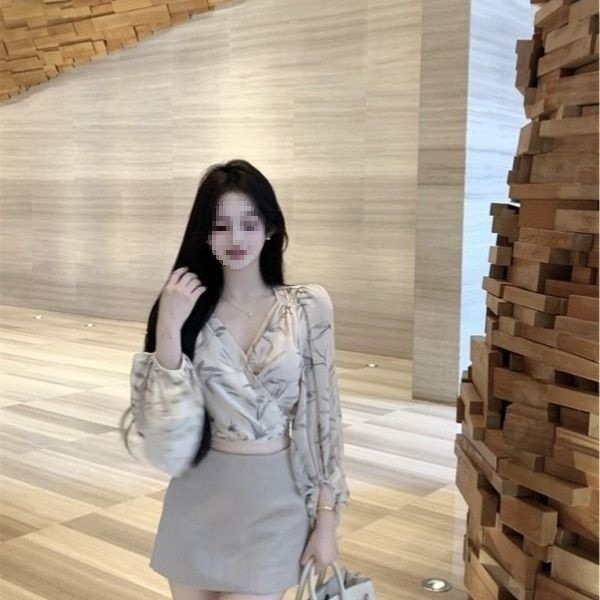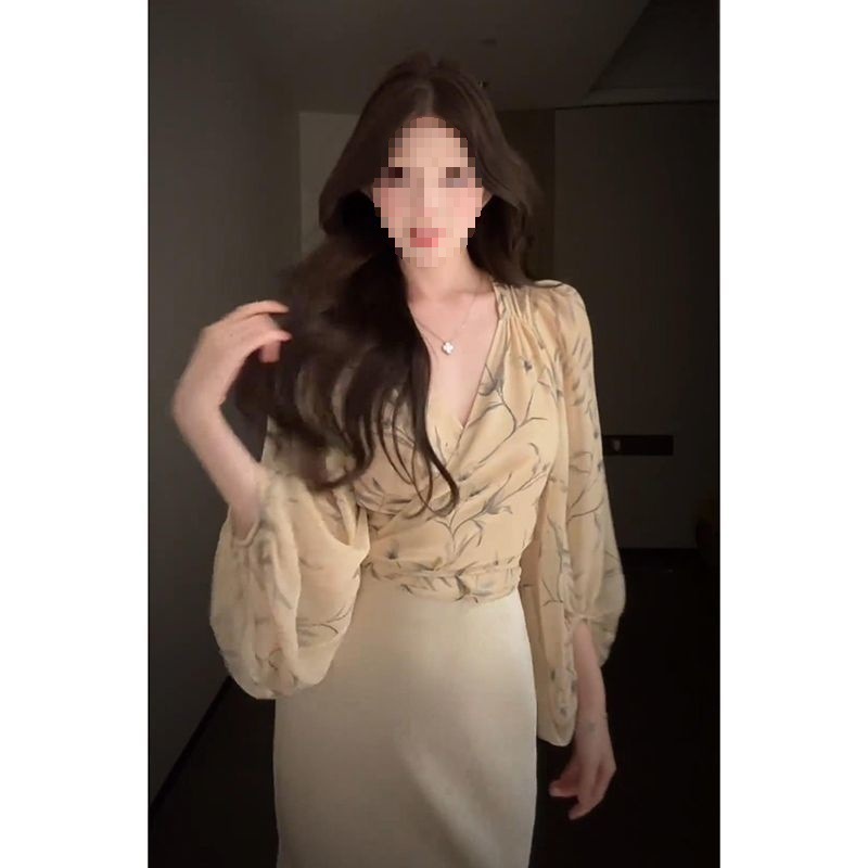 여성을위한 레트로 프린트 크로스 칼라 긴팔 쉬폰 셔츠 여름 허리 슬리밍 셔츠 디자인 짧은 탑