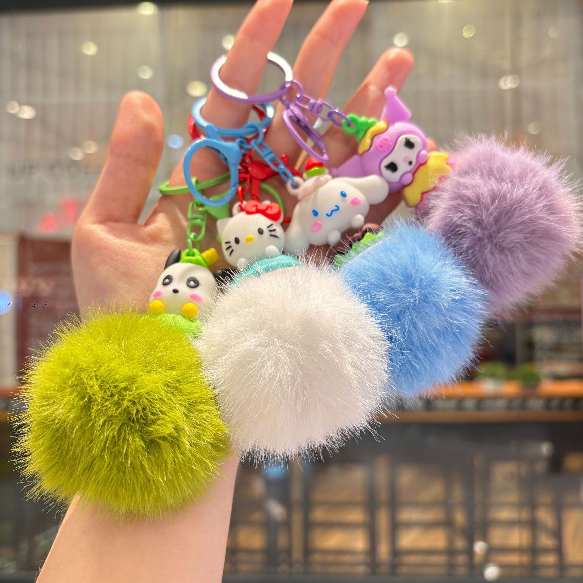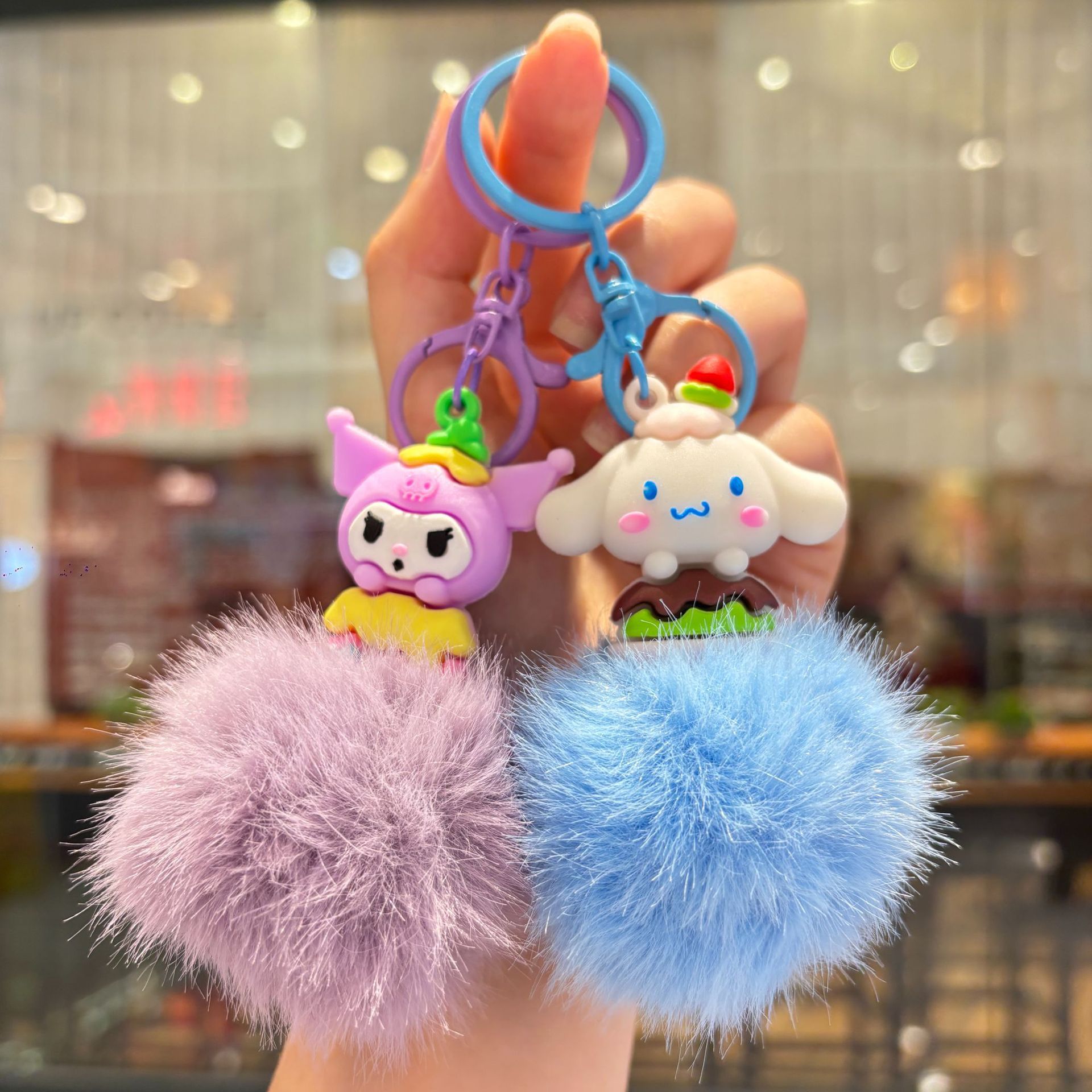 Sanrio 키 체인 헤어 볼 인형 펜던트 휴대 전화 체인 학생 학교 가방 펜던트 커플 작은 선물 액세서리 도매스토어 가기