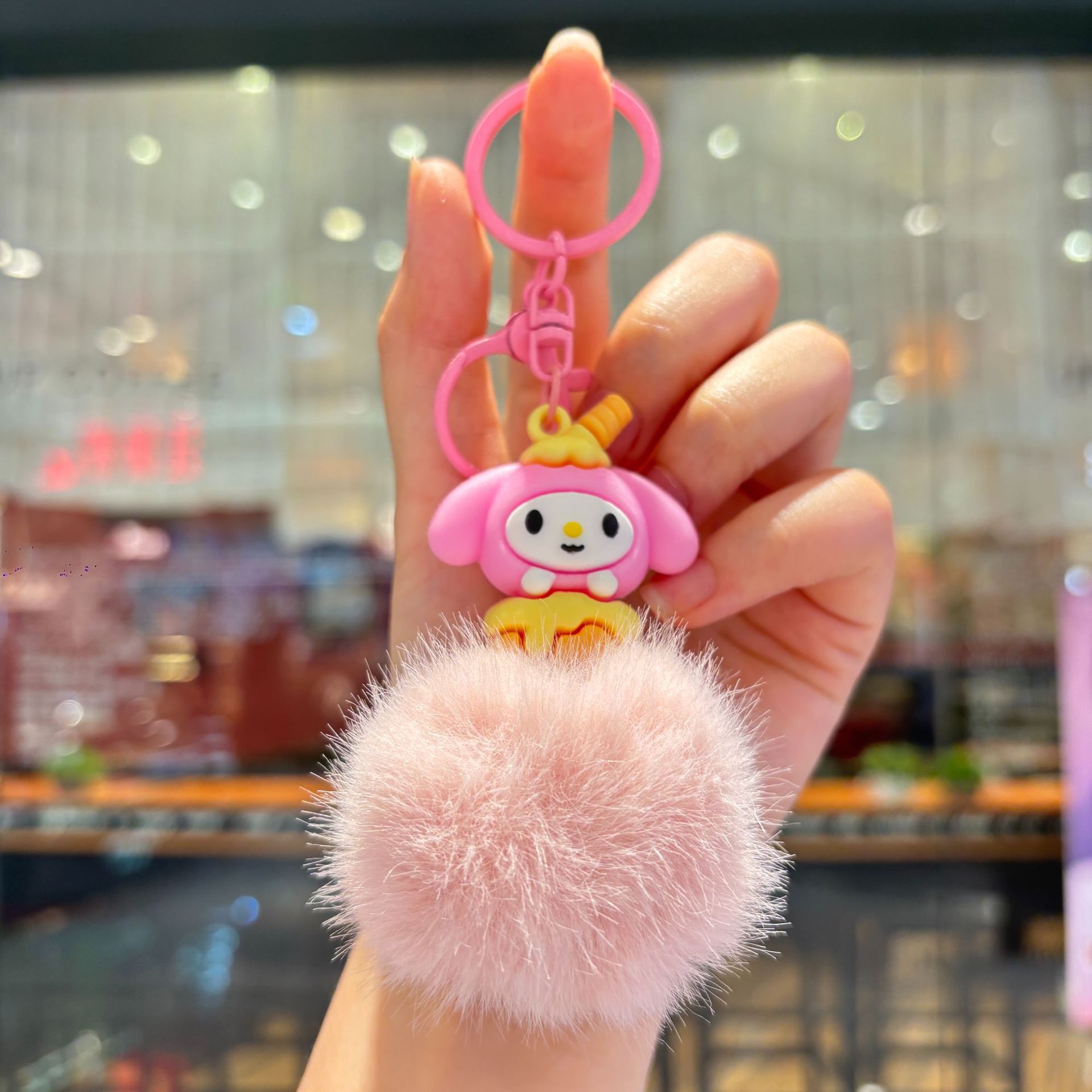 Sanrio 키 체인 헤어 볼 인형 펜던트 휴대 전화 체인 학생 학교 가방 펜던트 커플 작은 선물 액세서리 도매