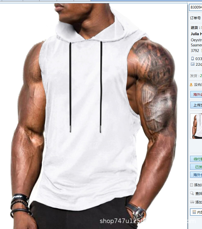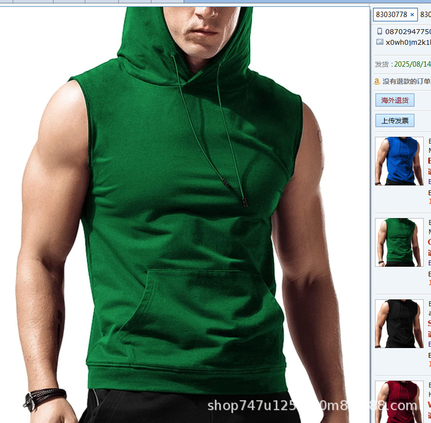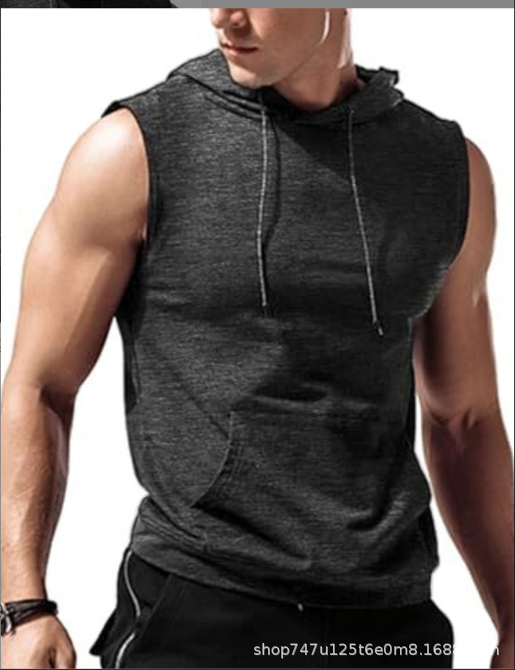 Amazon 남성용 탱크 탑 후드 민소매 루즈 솔리드 컬러 포켓 피트니스 근육 트레이닝 러닝 스포츠 탑스토어 가기