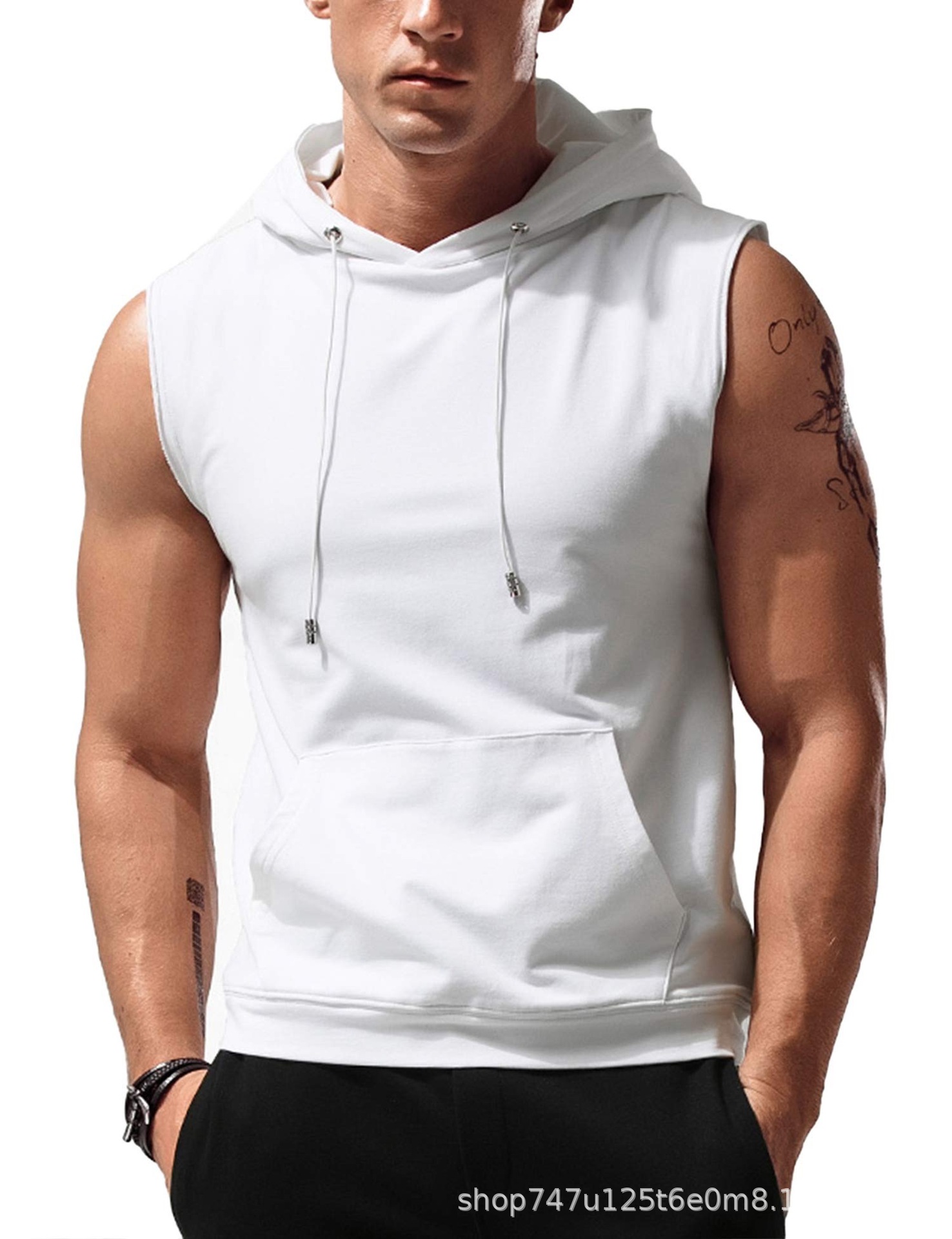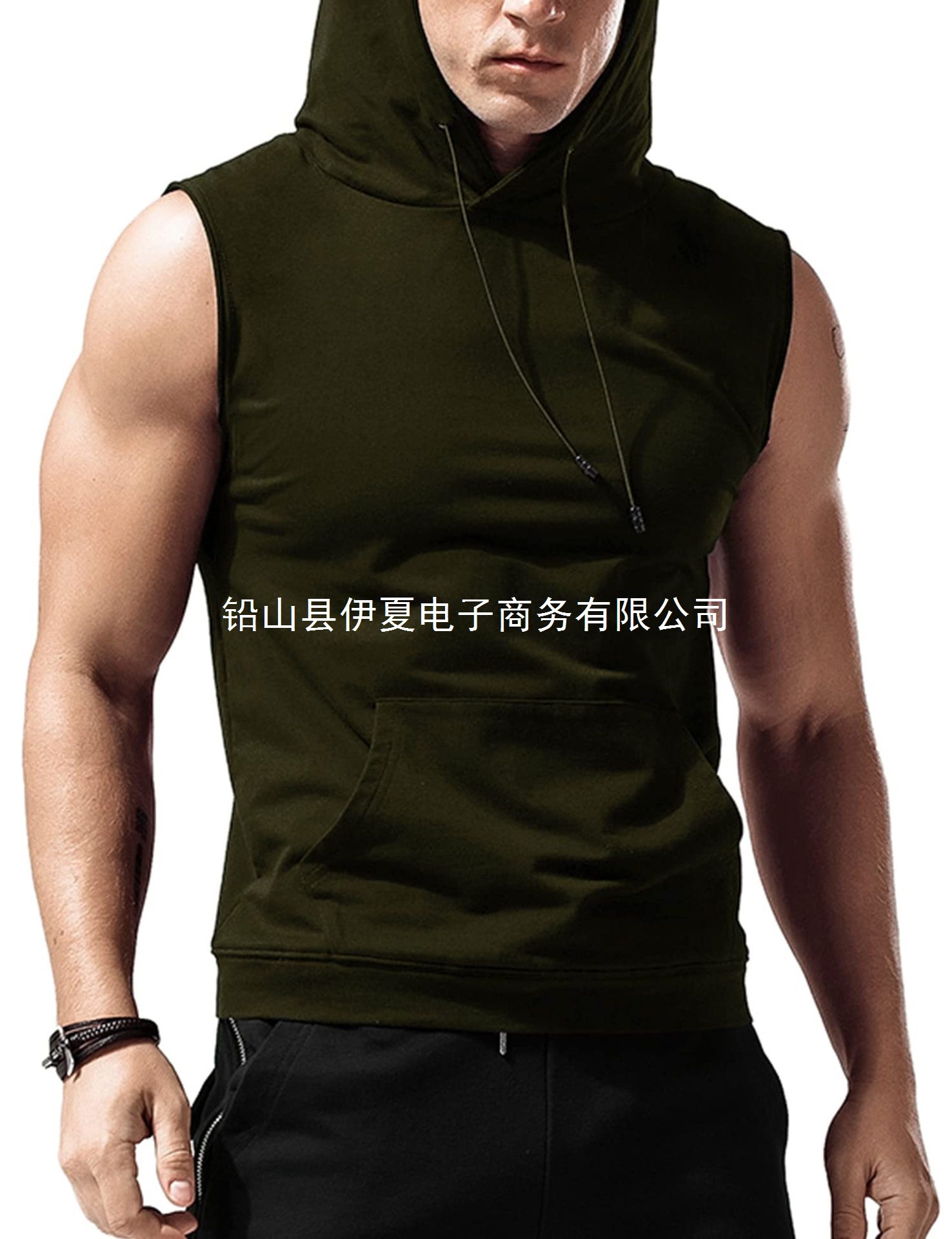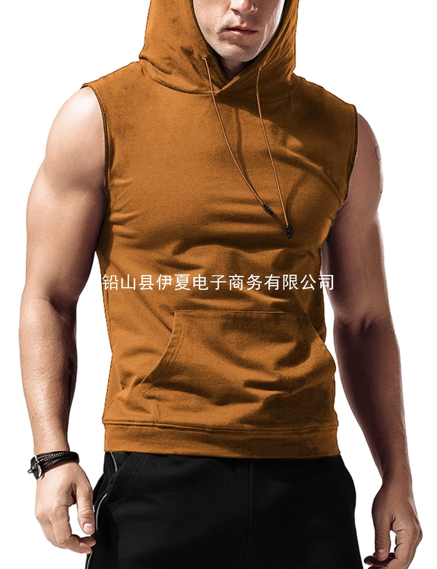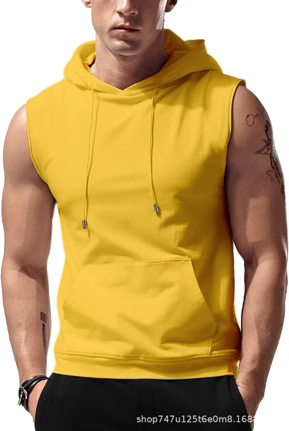Amazon 남성용 탱크 탑 후드 민소매 루즈 솔리드 컬러 포켓 피트니스 근육 트레이닝 러닝 스포츠 탑