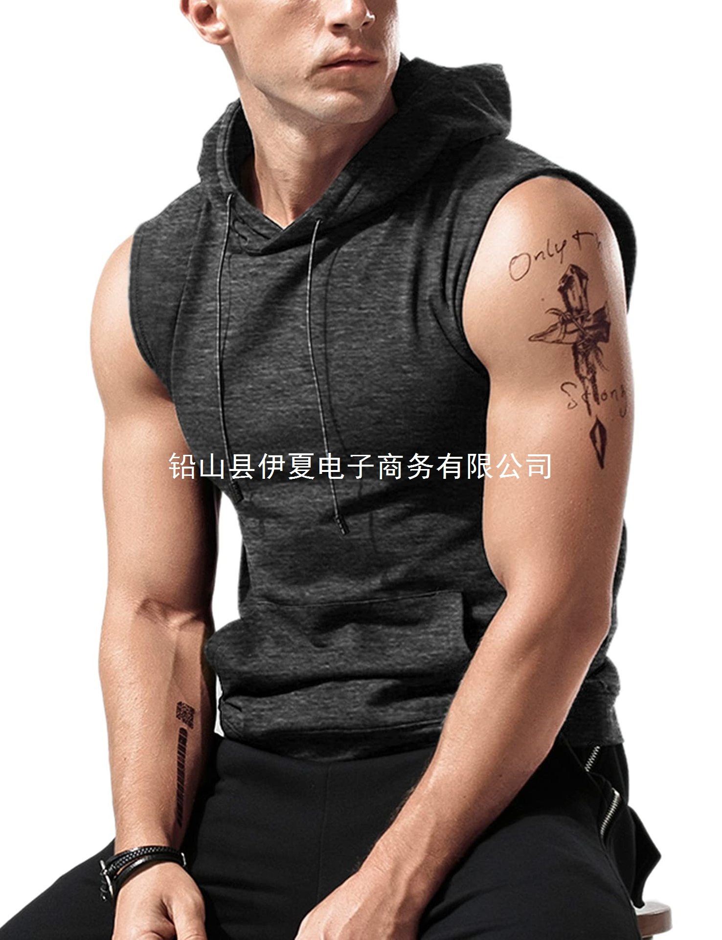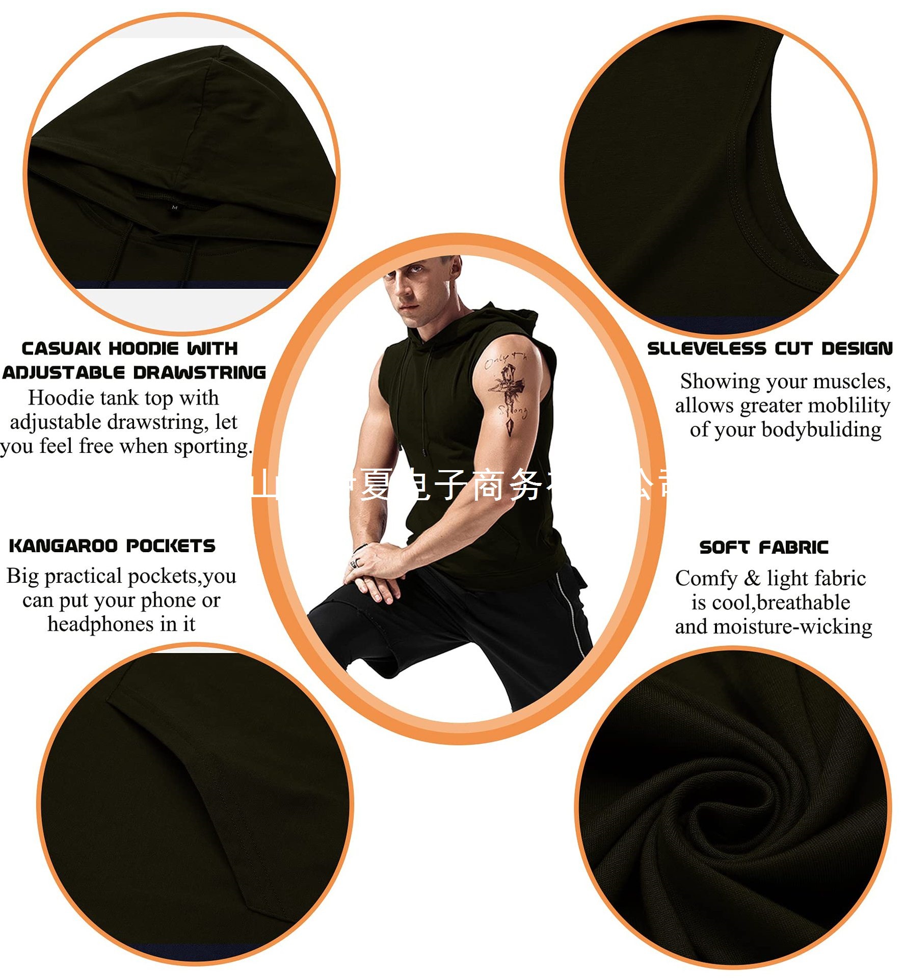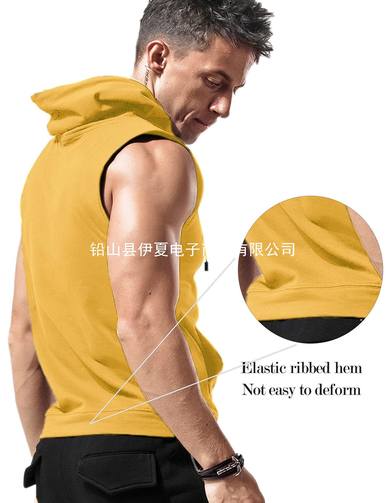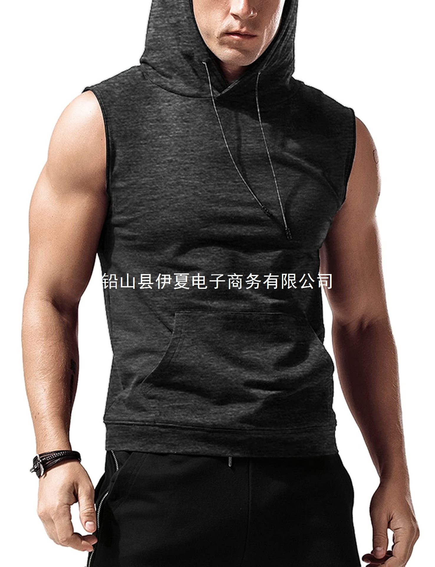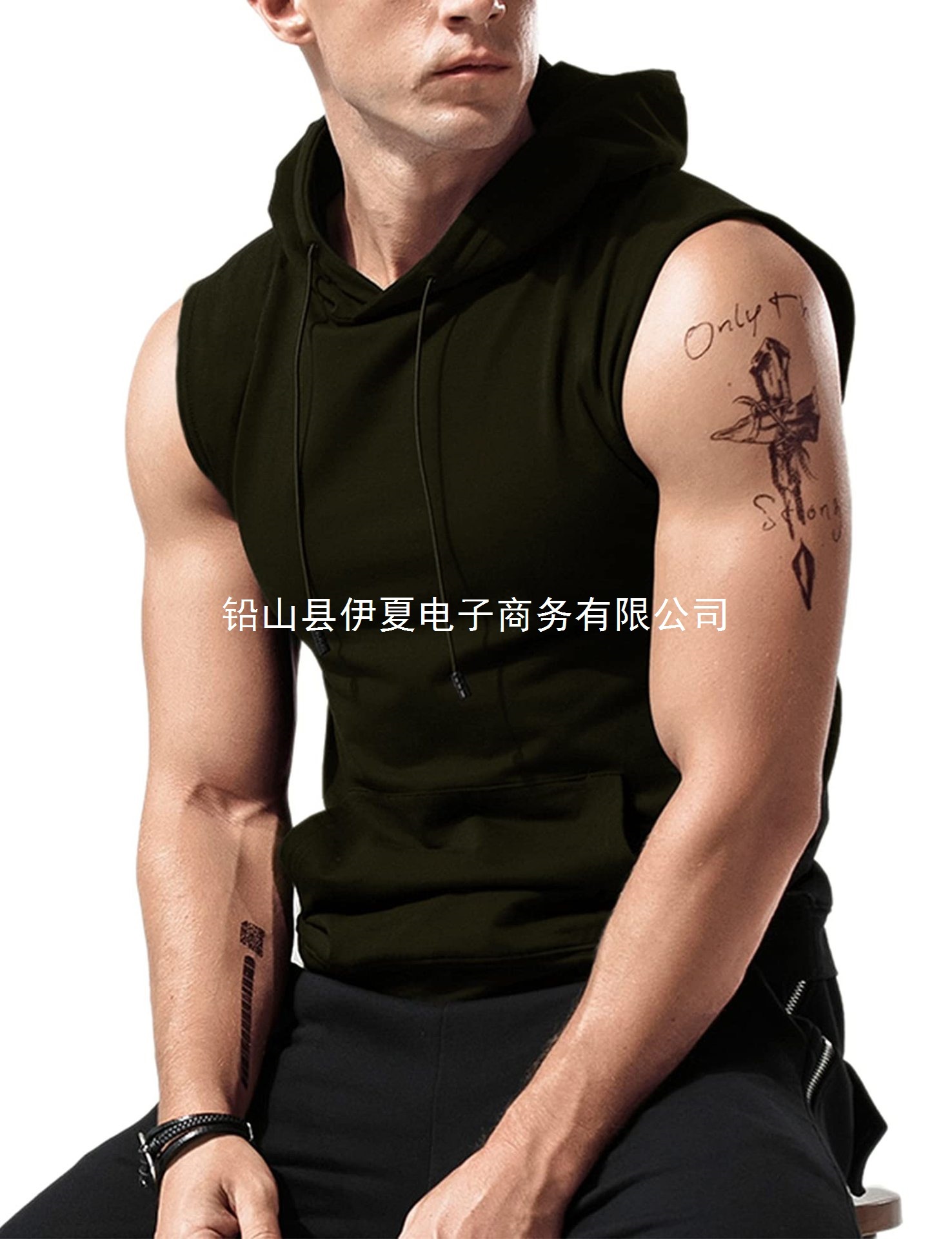 Amazon 남성용 탱크 탑 후드 민소매 루즈 솔리드 컬러 포켓 피트니스 근육 트레이닝 러닝 스포츠 탑